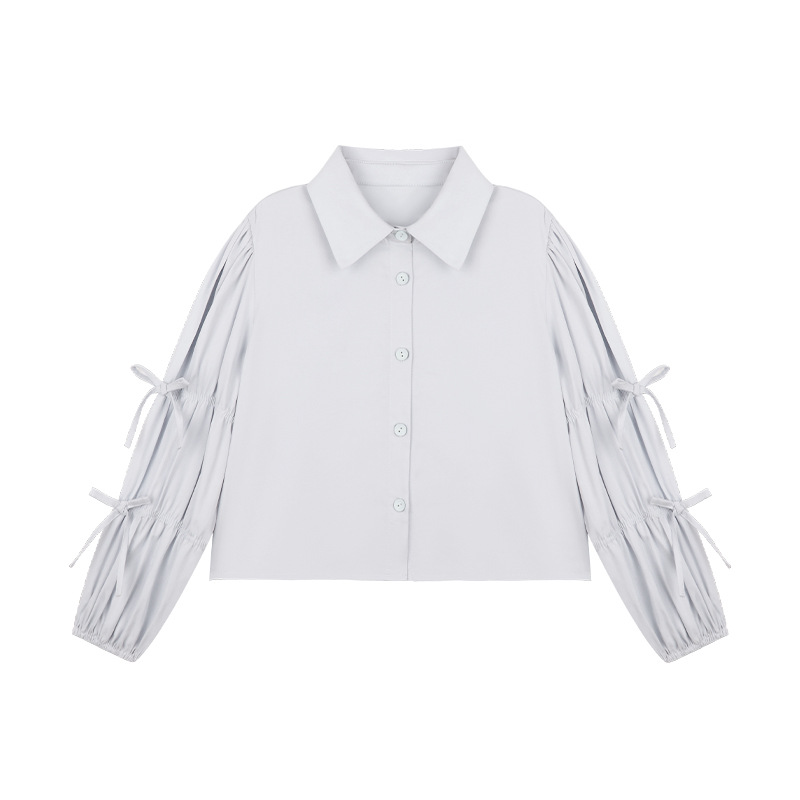 Amybaby 소녀의 최고 봄 2025 새로운 신선한 스타일 활 타이 인형 셔츠 서양식 달콤한 셔츠