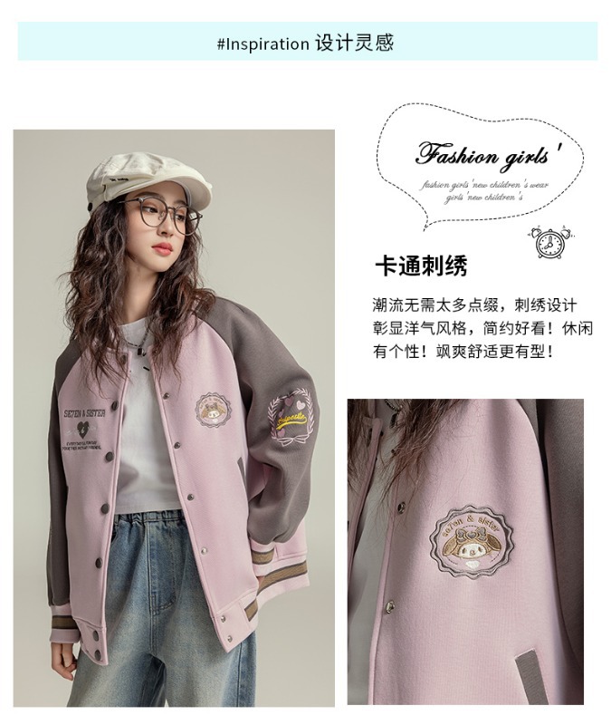 어린이 야구 세트 코트 2025 년 봄과 가을 새로운 큰 어린이 가을 옷 중학생 폭발 거리 조수 15 세 핑크