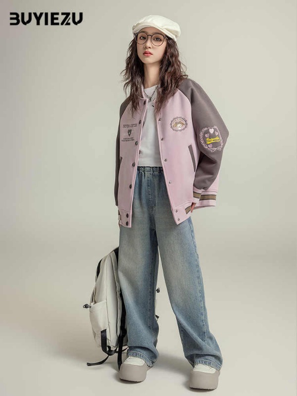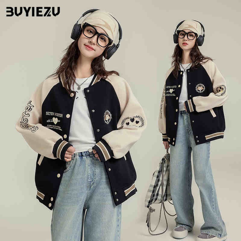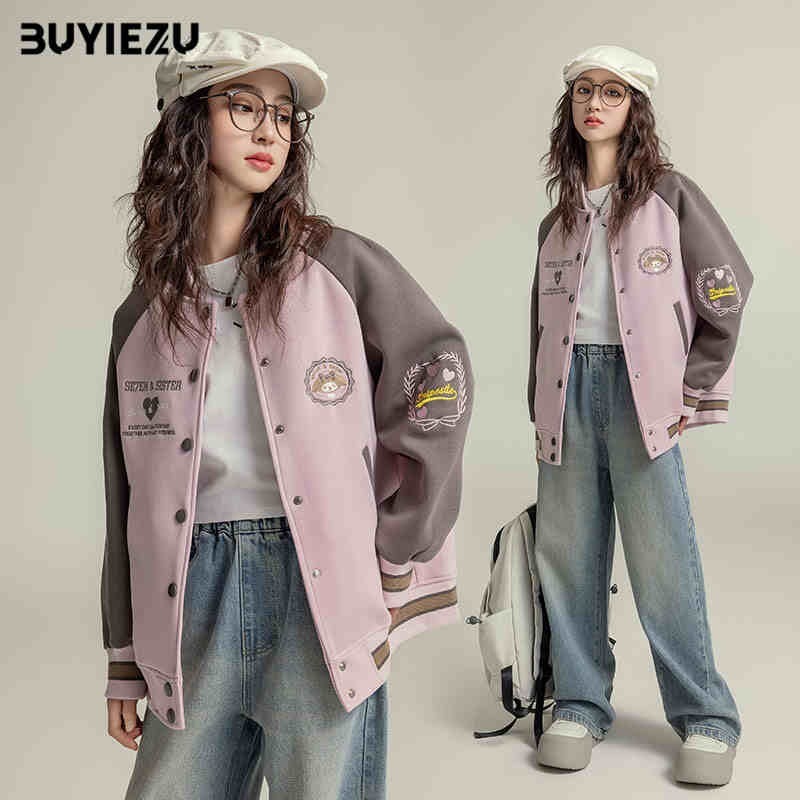 어린이 야구 세트 코트 2025 년 봄과 가을 새로운 큰 어린이 가을 옷 중학생 폭발 거리 조수 15 세 핑크스토어 가기