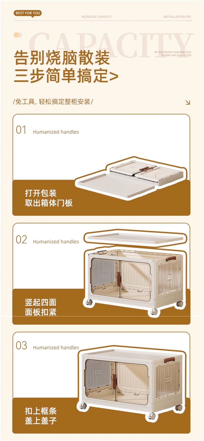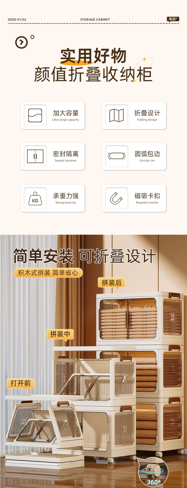 • [독립형 대형 박스 모델] 3단 패키지|커버 3개 + 박스 3개 + 바퀴 4개 [자석 양문형]