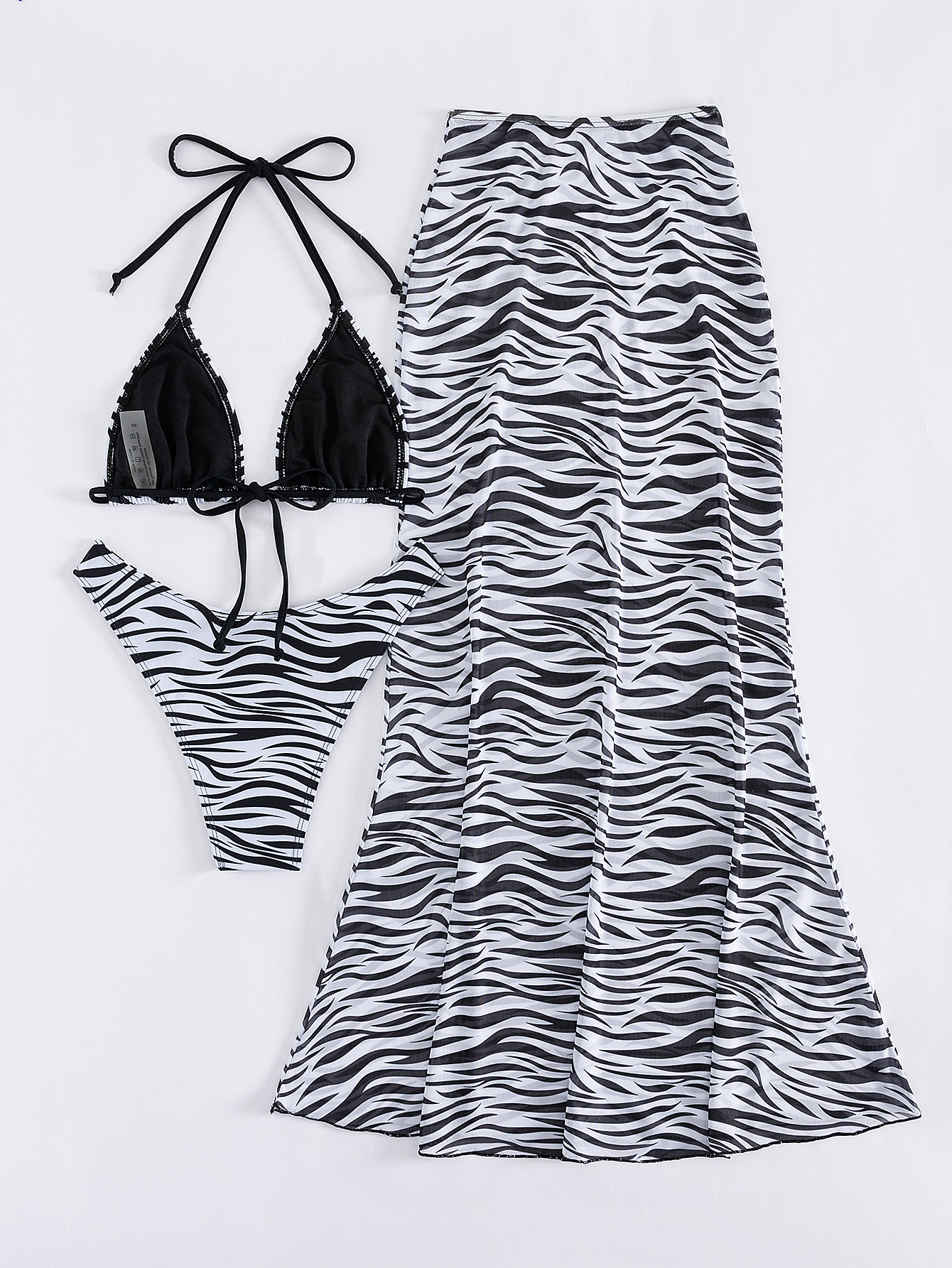 2025 새로운 얼룩말 인쇄 높은 허리 바지 크로스 레이스 솔리드 컬러 블랙 섹시한 비키니 패션