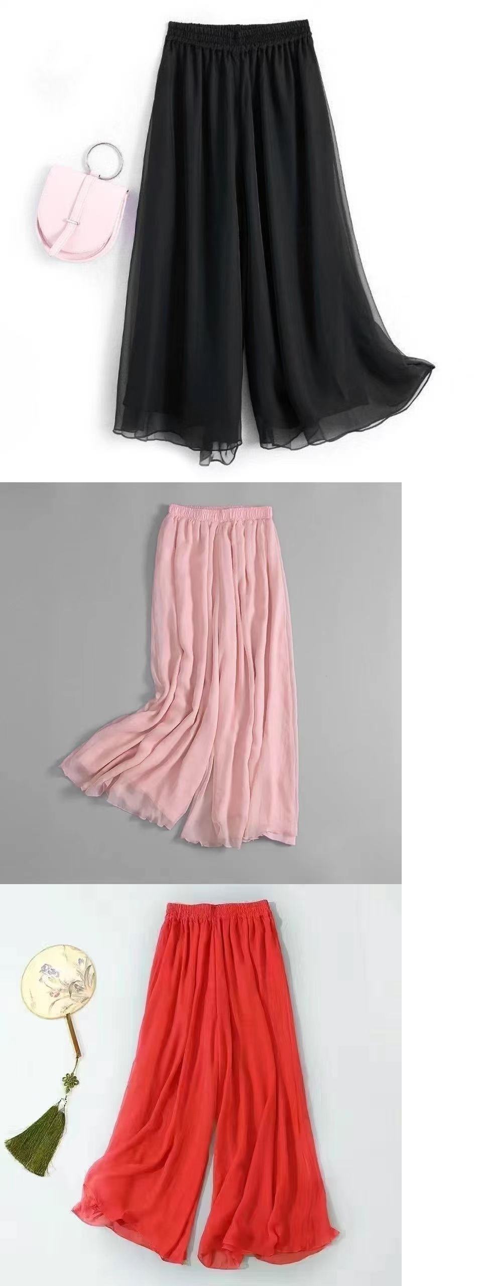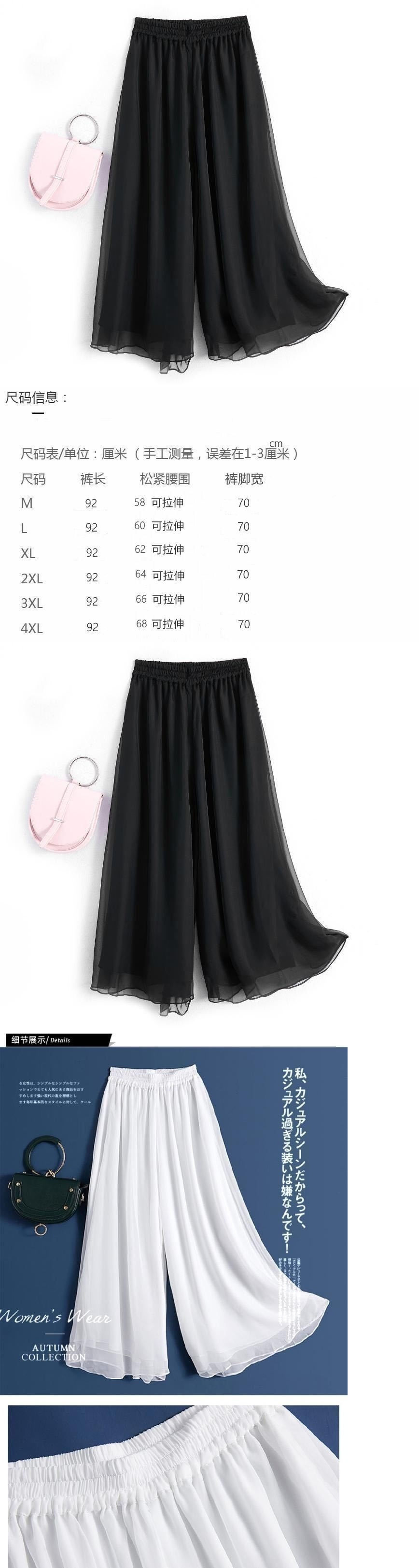더블 레이어 넓은 다리 바지 블랙 쉬폰 다리 바지 높은 허리 느슨한 캐주얼 바지 자른 바지
