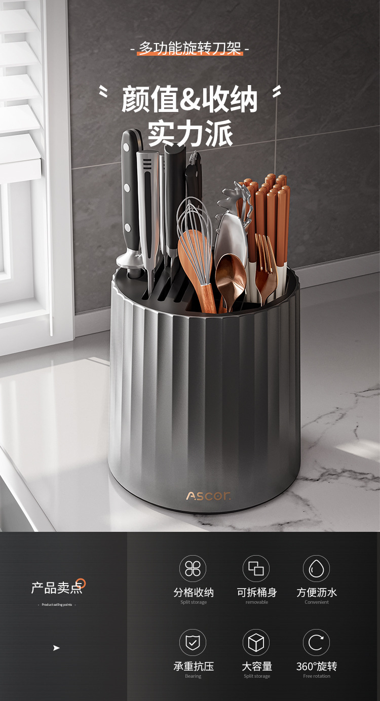 회전 칼 홀더 가정용 숟가락 포크 젓가락 케이지 통합 저장 주방 용품 다기능 칼 홀더 스토리지 랙
