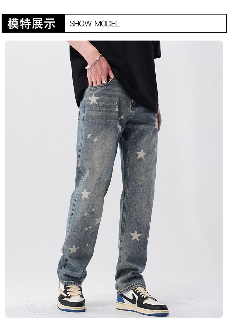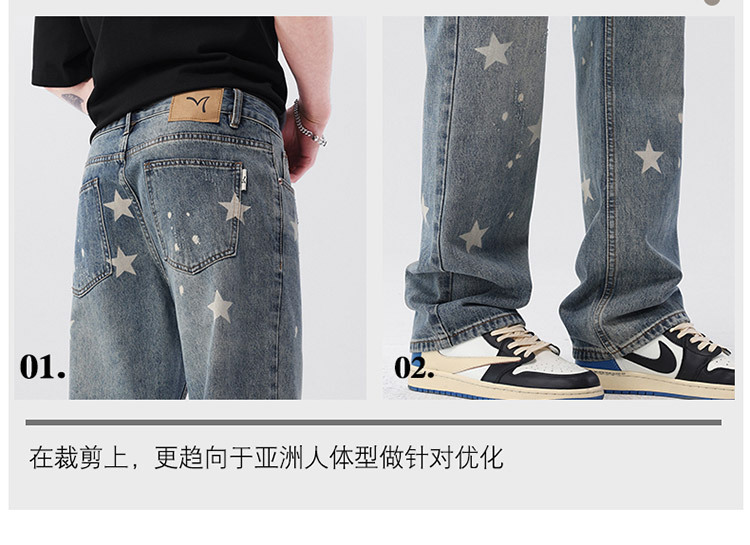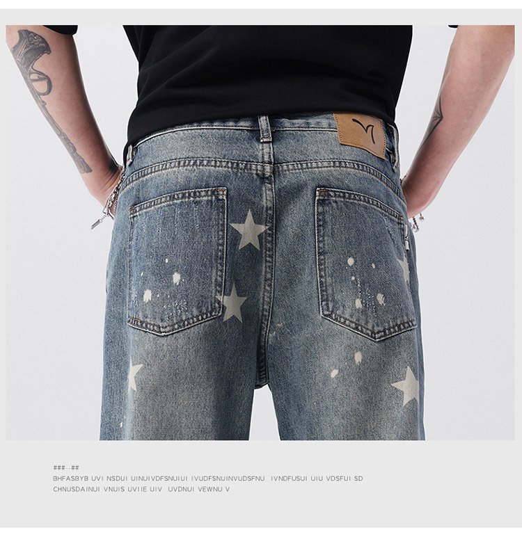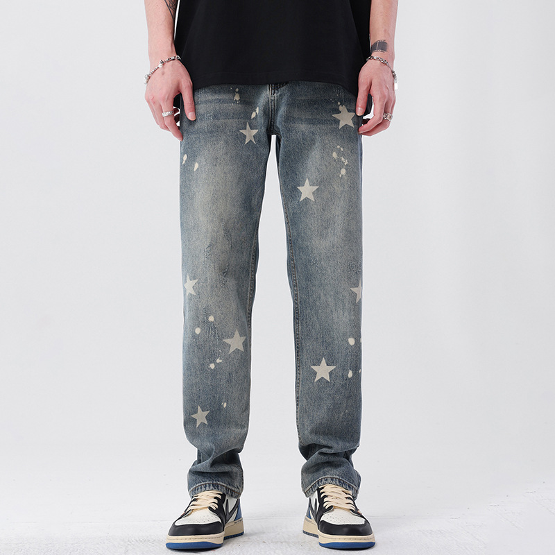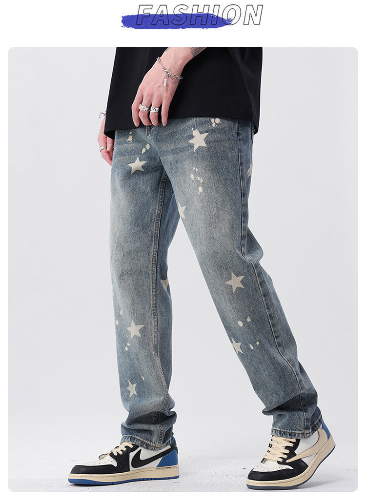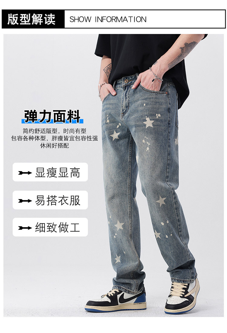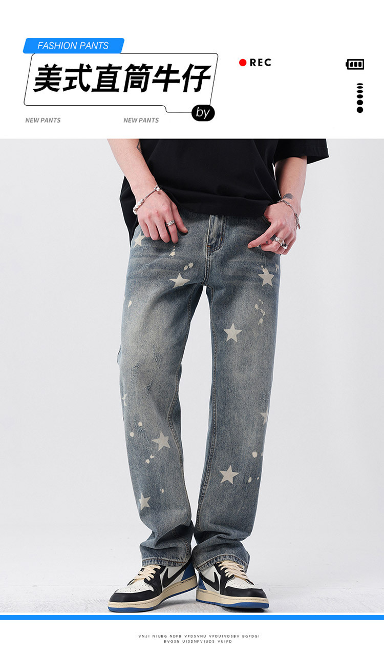 아메리칸 스타일 하이 스트리트 청바지 남성용 루즈 스트레이트 협곡 스타 워시 와이드 레그 팬츠 가을과 겨울 새로운 올 매치 바지스토어 가기