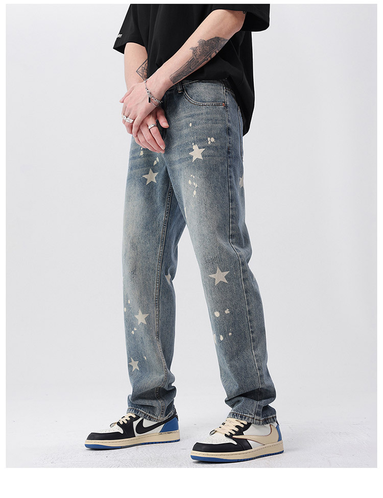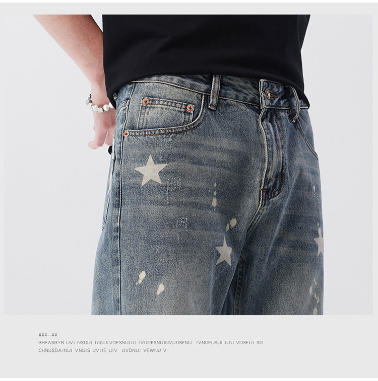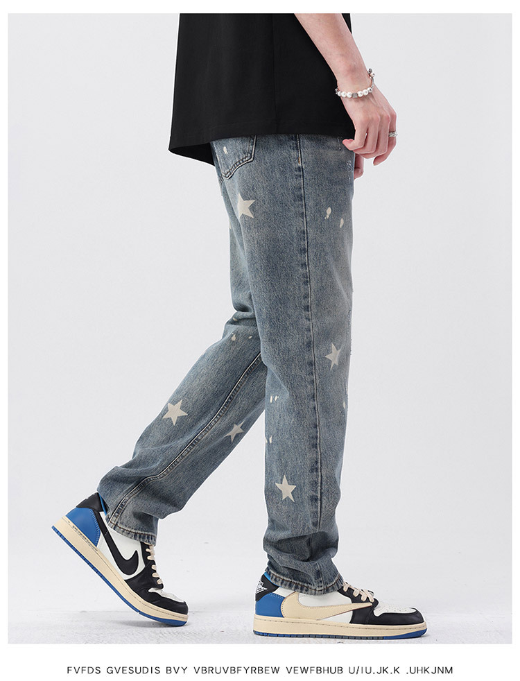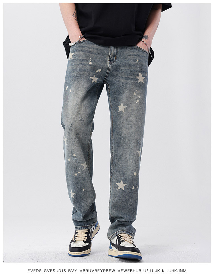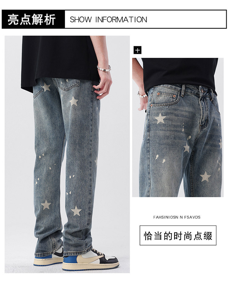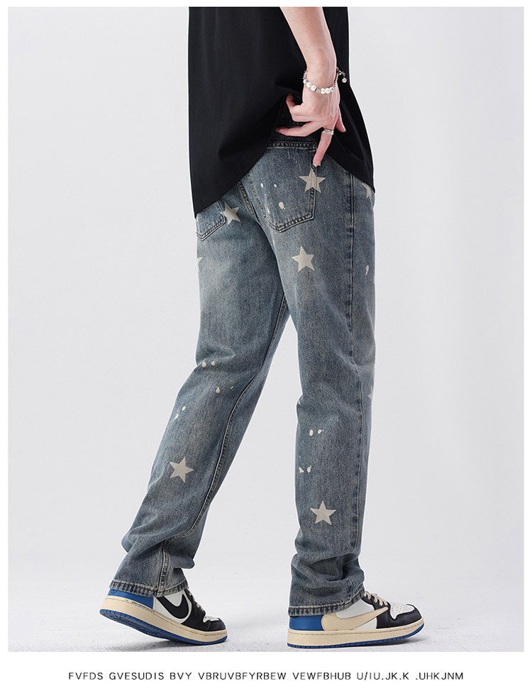 아메리칸 스타일 하이 스트리트 청바지 남성용 루즈 스트레이트 협곡 스타 워시 와이드 레그 팬츠 가을과 겨울 새로운 올 매치 바지스토어 가기