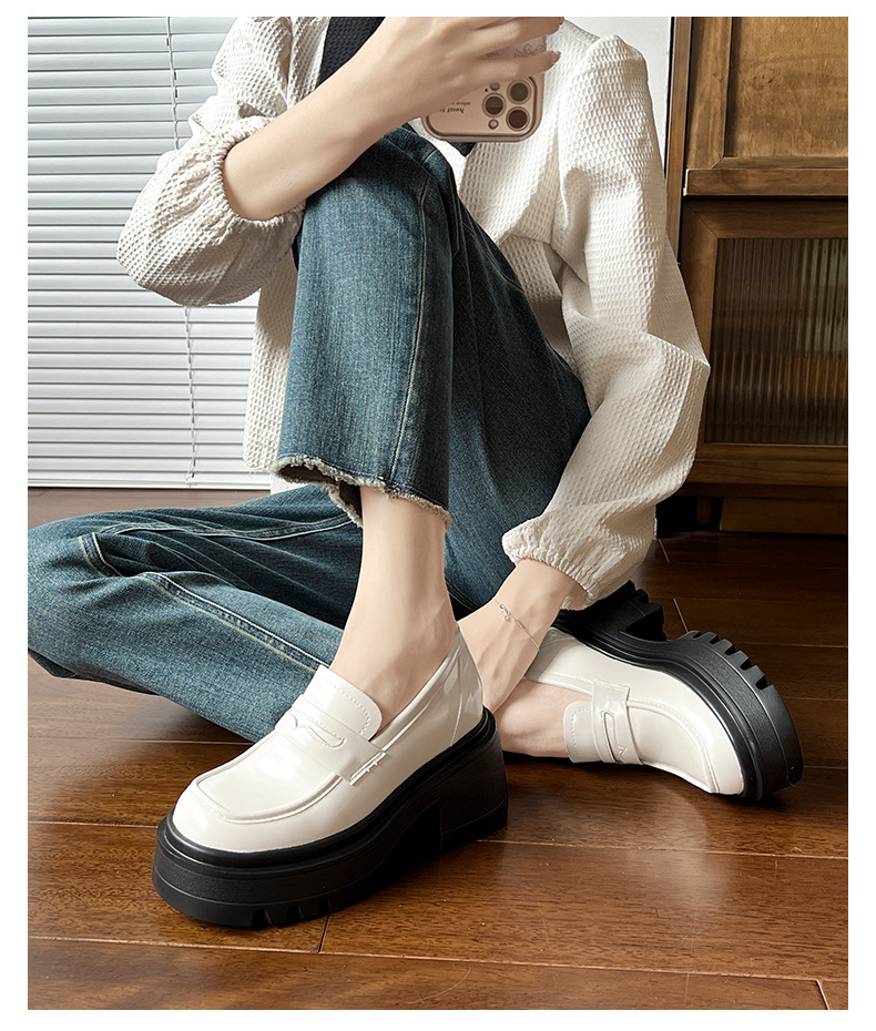10cm 보이지 않는 내부 강화 플랫폼 두꺼운 밑창 로퍼 2024 영국 블랙 jk 여성용 작은 가죽 신발스토어 가기
