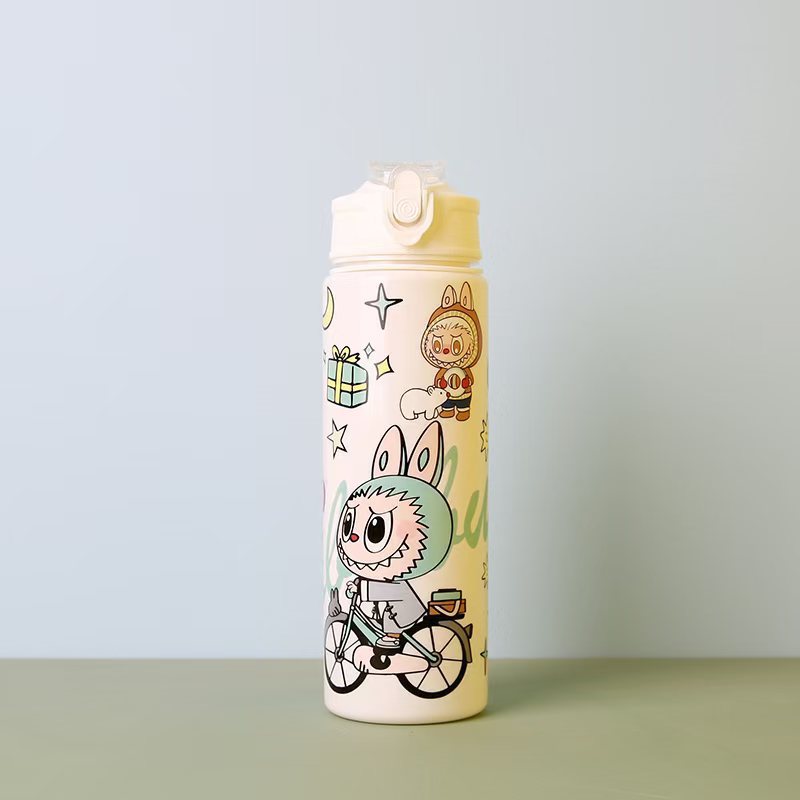 크로스-국경 2025 새로운 여자 컵 디자인 센스 틈새 컵 흡입 튜브 높은 가치 티 컵 만화 패턴 큰 물 컵