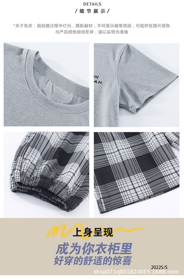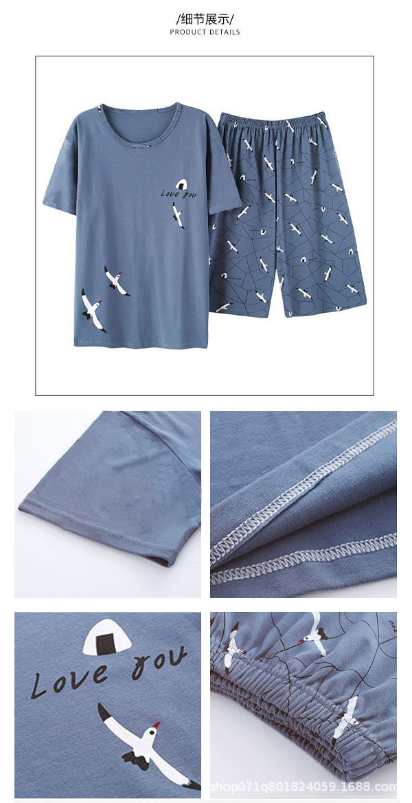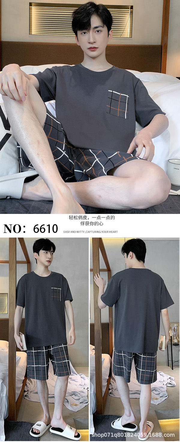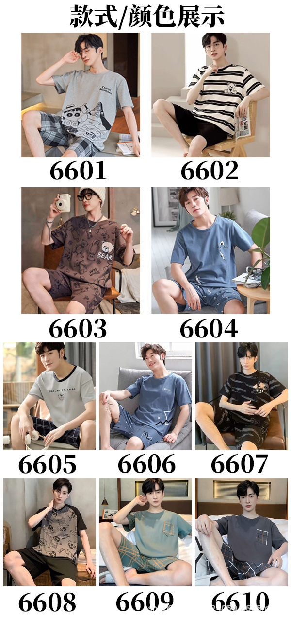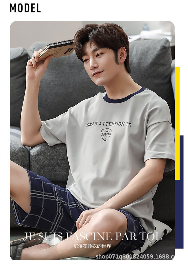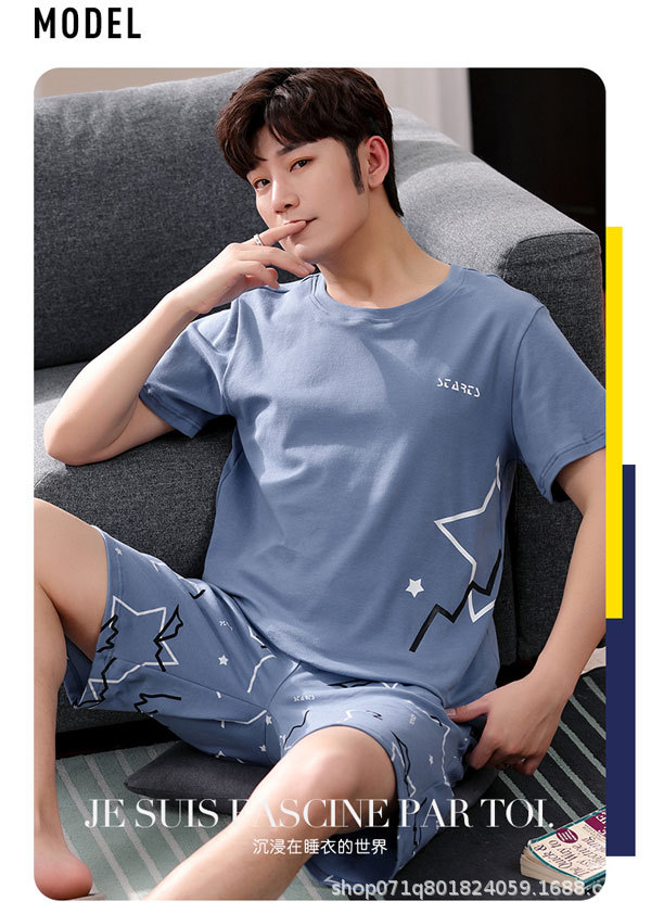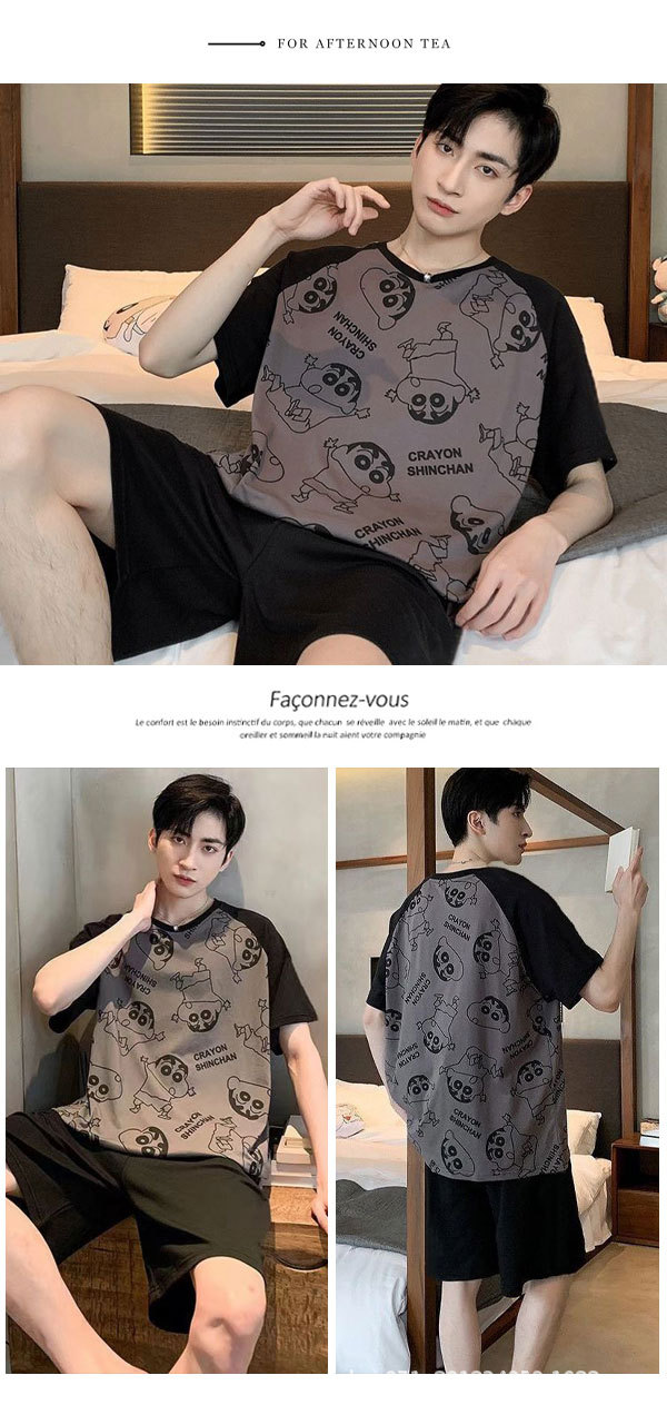 여름 한국 스타일 만화 남자 잠옷 간단한 느슨한 짧은 소매 반바지 얇은 잠옷 세트 집 옷스토어 가기