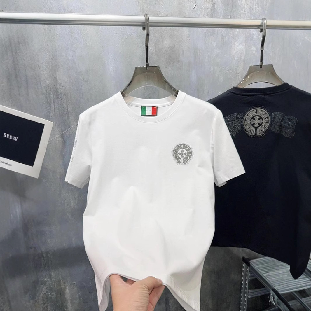 플러스 사이즈 300 진 여름 새 하이 퀄리티 간단한 유럽 트렌드 성격 뜨거운 드릴링 날개 패턴 남성 크루 넥 티셔츠
