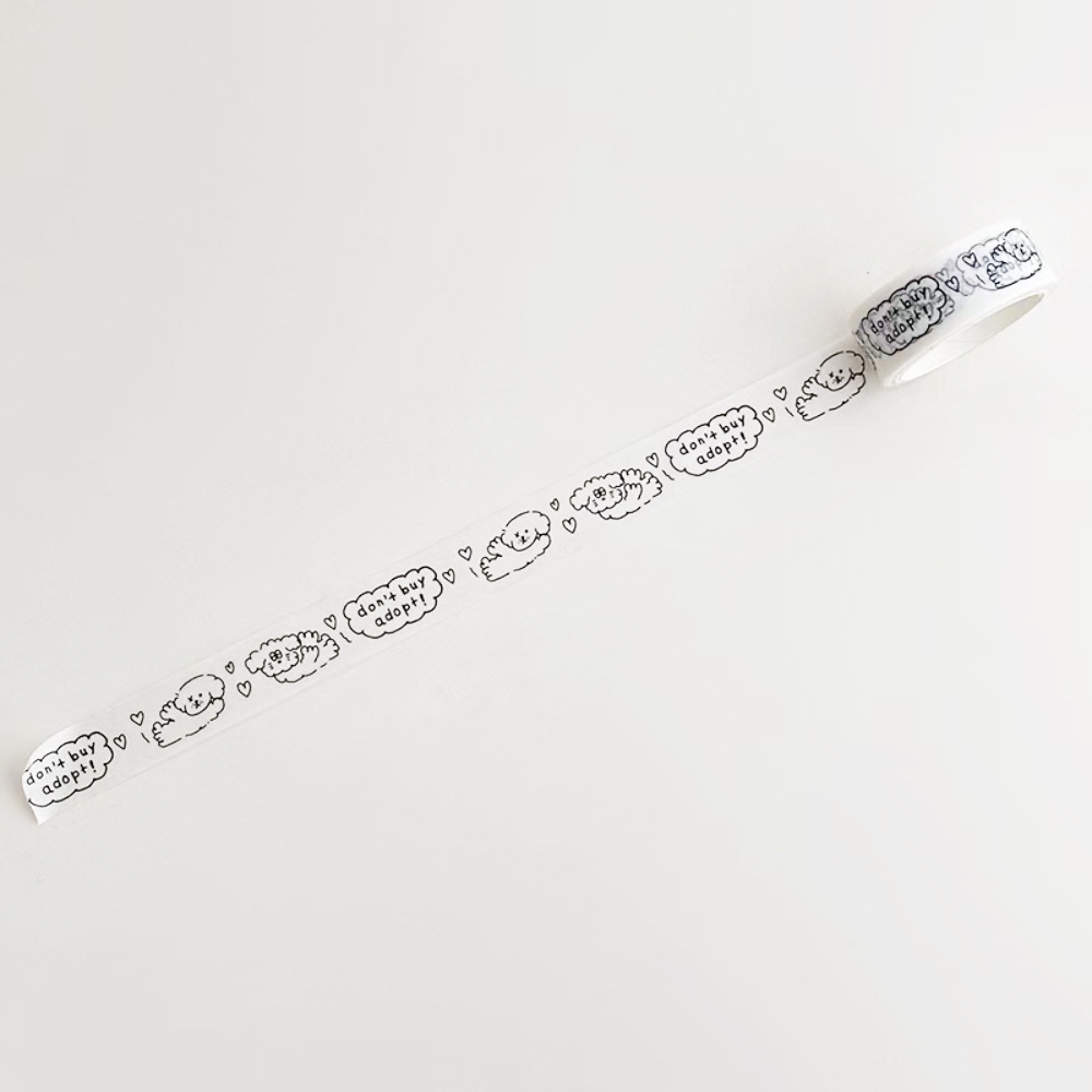 [5 m] 한국 인스와 종이 테이프 흑백 스틱 그림 강아지 고양이 손 계정 소재 스티커 테이프스토어 가기
