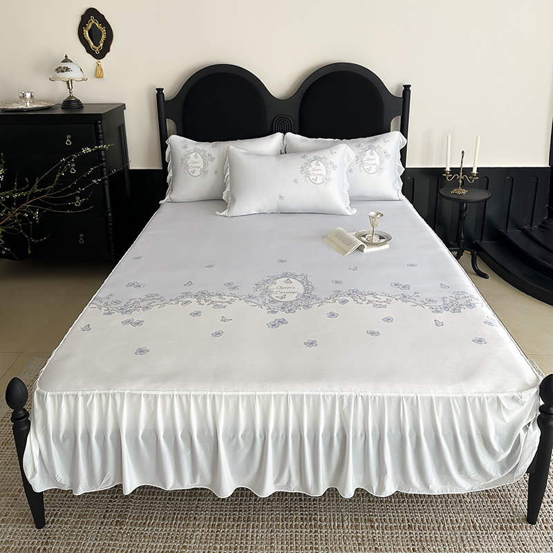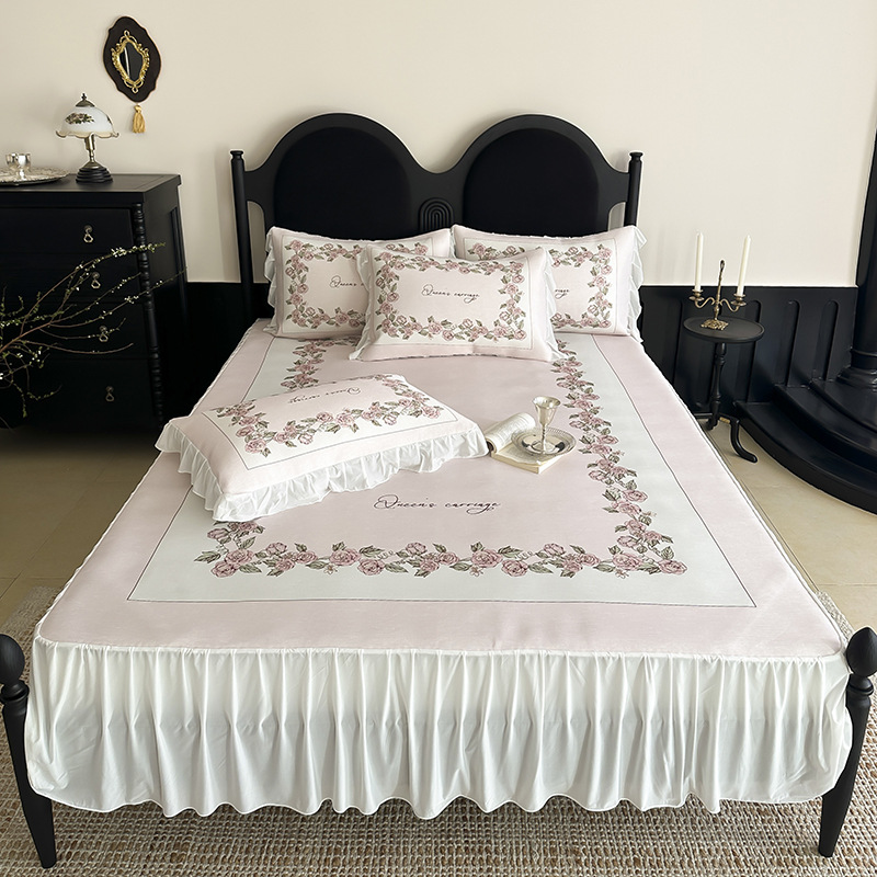 2 프랑스 스타일 침대 치마 디지털 인쇄 아이스 실크 여름 매트 3 피스 공주 스타일 시폰 로맨틱 여름 매트
