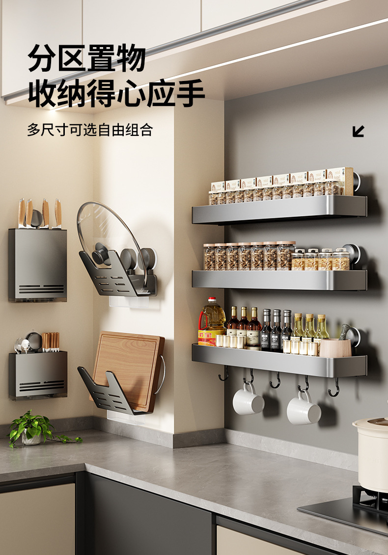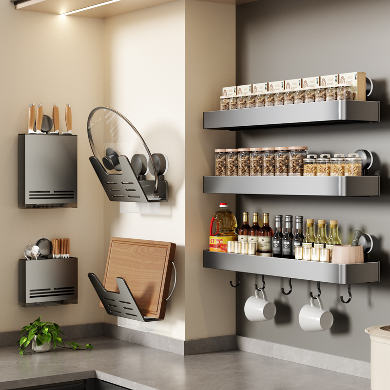 흡입 컵 주방 보관 랙 펀치가없는 가정용 벽 장착 다기능 나이프 랙 조미료 보관 용 스파이스 랙
