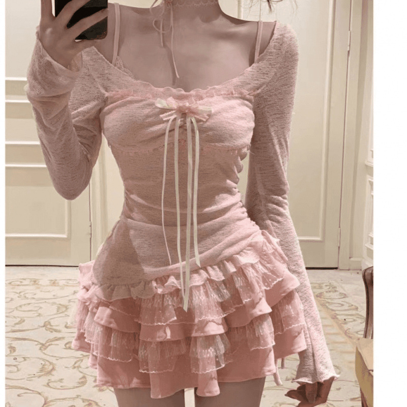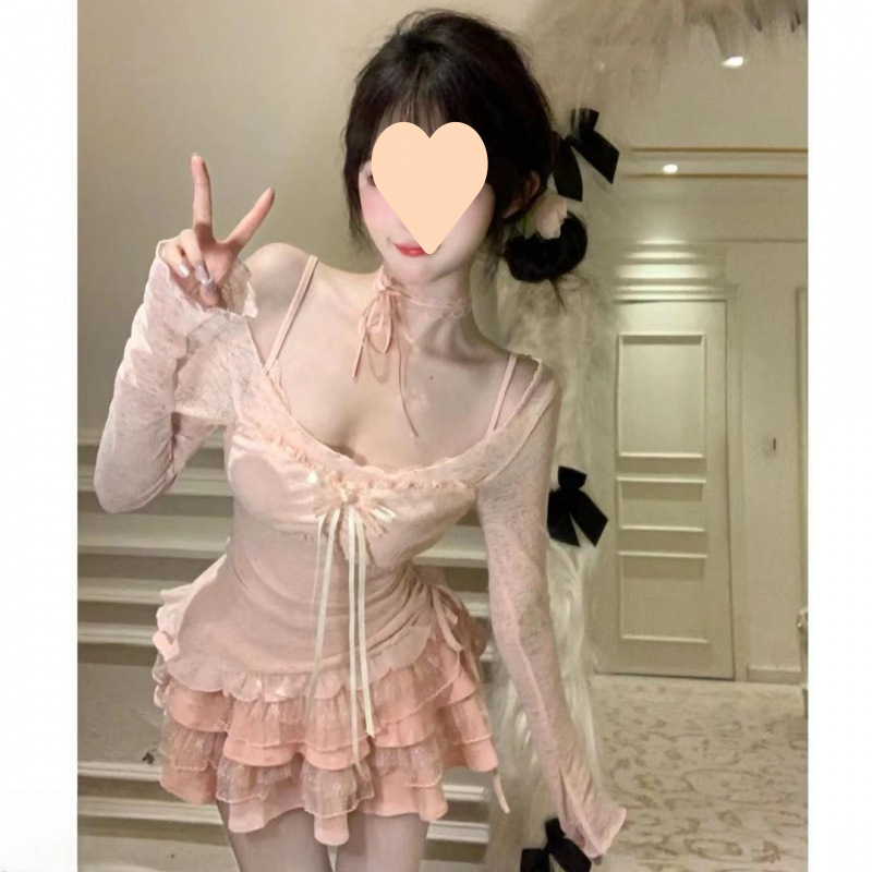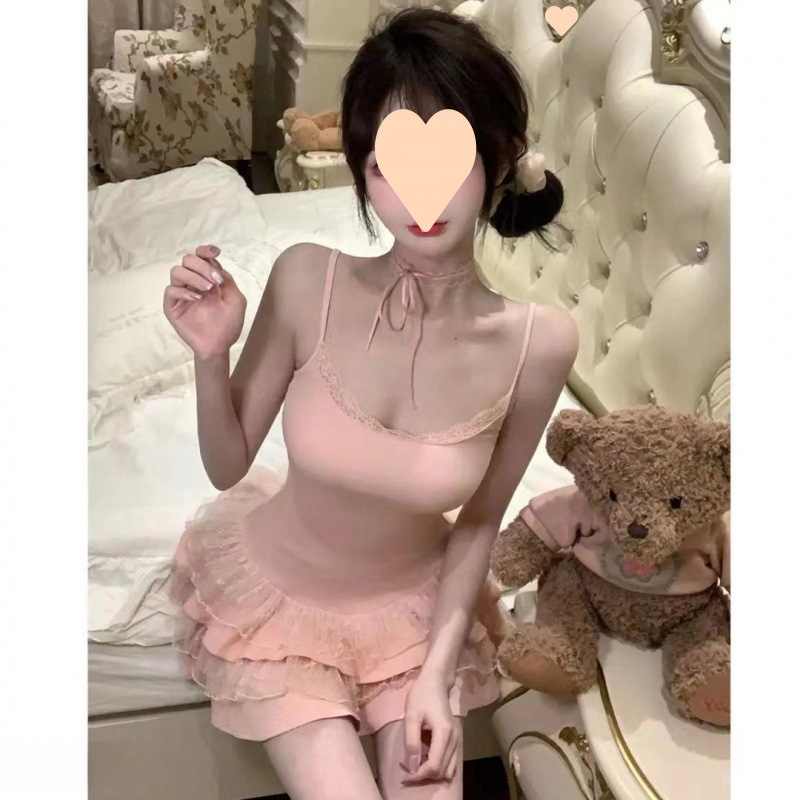 인간의 복숭아 순수한 욕망 스타일 달콤하고 매운 슬림 스트랩 탑 하프 스커트 세트 새로운 레이스 세트스토어 가기