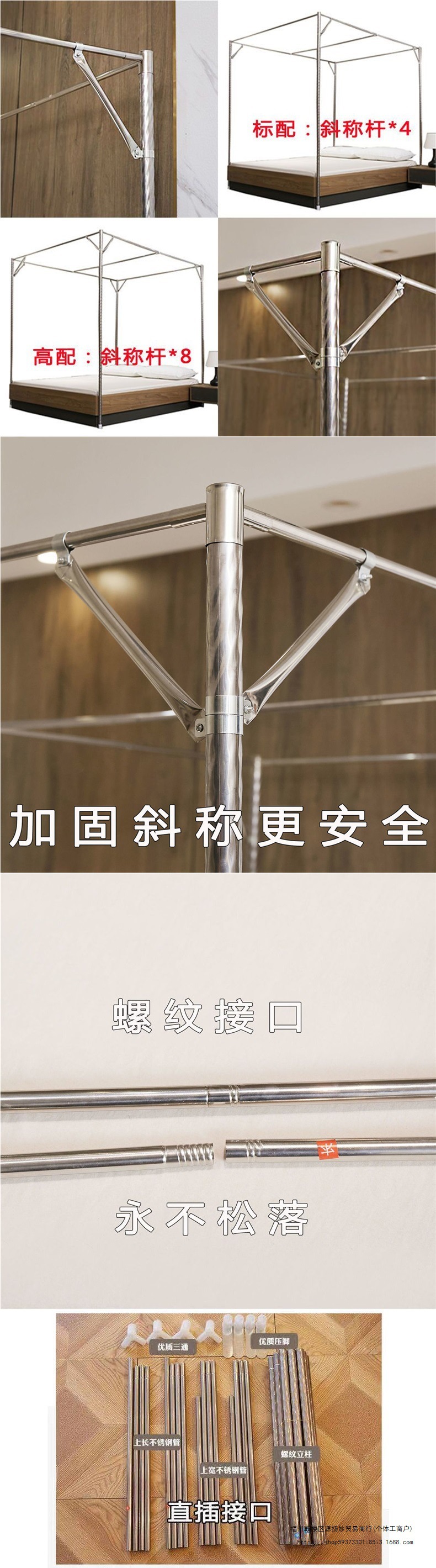 스테인레스 스틸 모기장 브래킷 1.5 미터 1.8 미터 침대 폴 액세서리 1.0 미터 세트 두꺼운 두꺼운 티 신제품스토어 가기