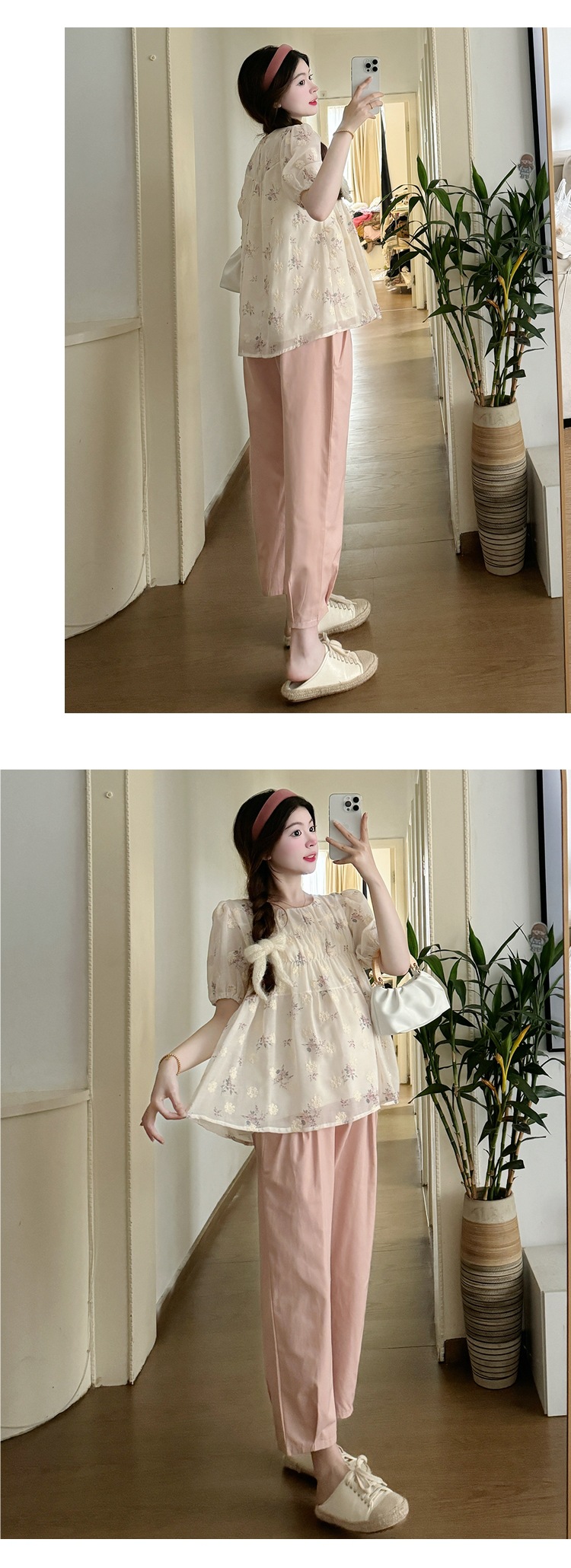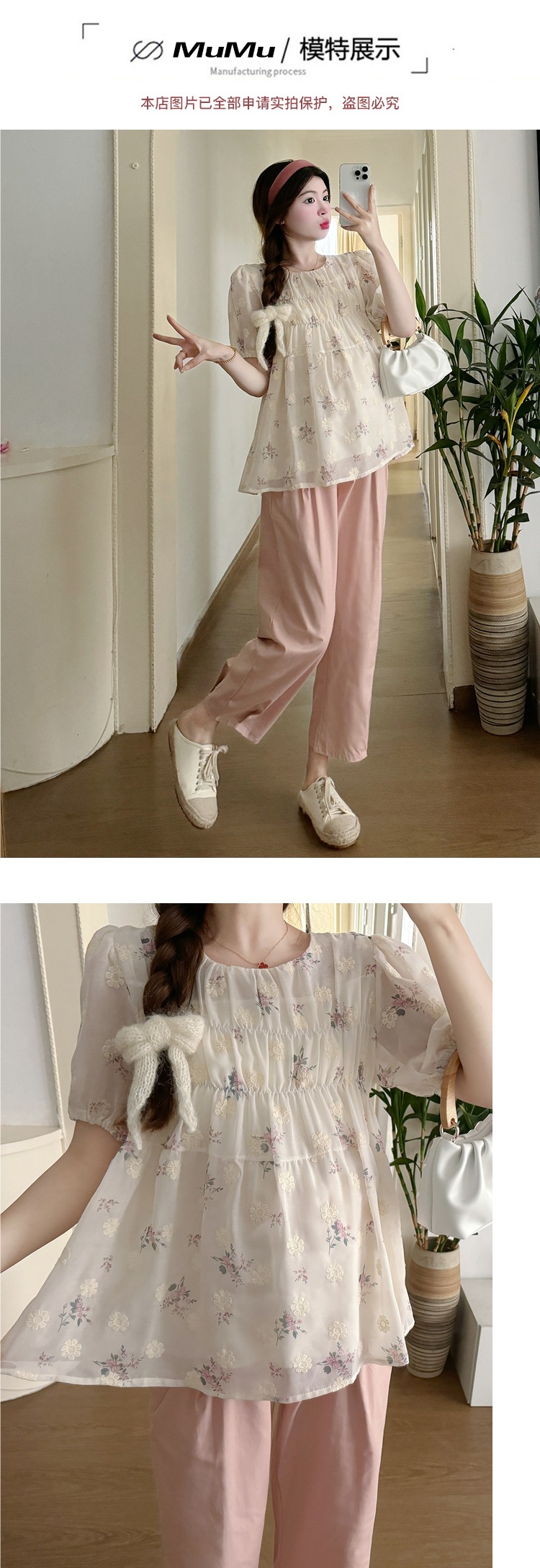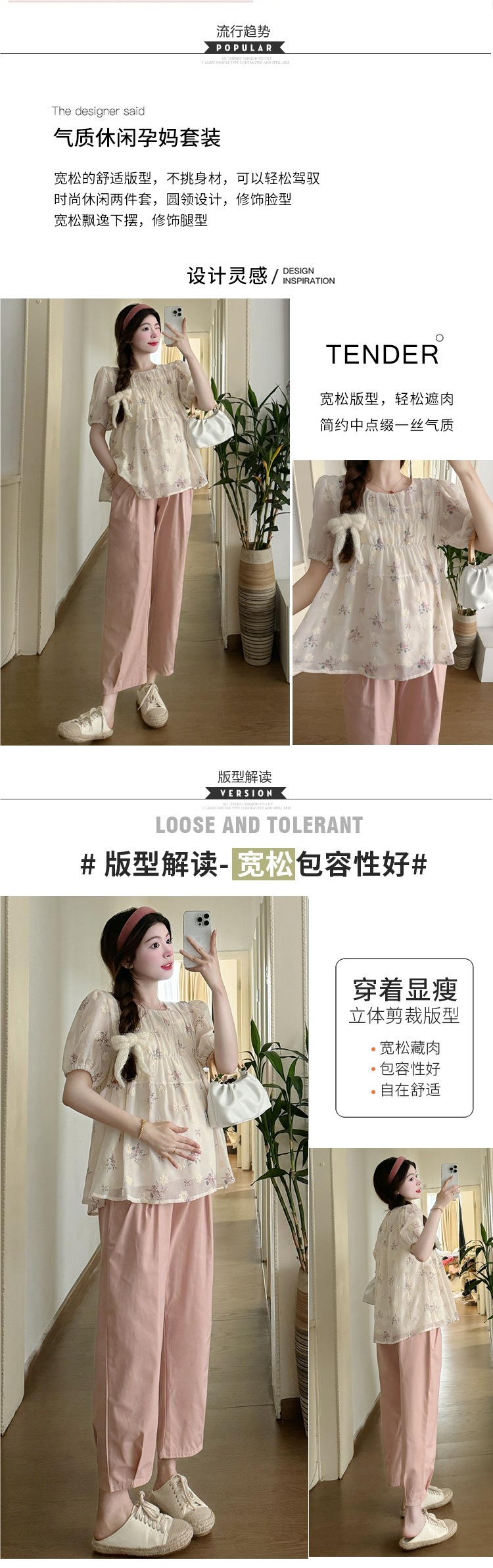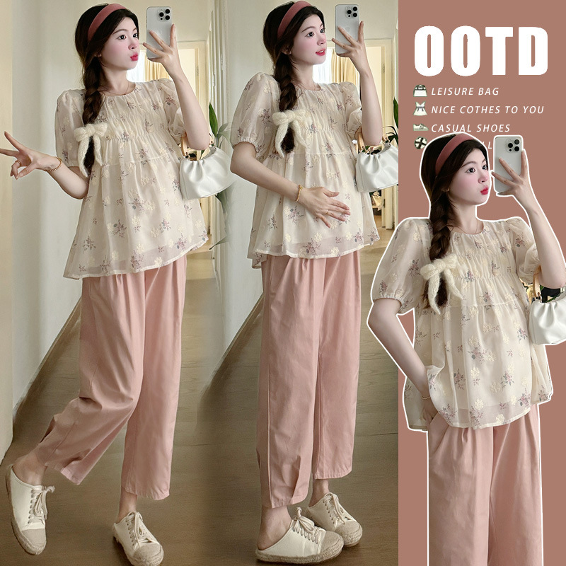 2025 여름 느슨한 달콤한 꽃 부드러운 인형 셔츠 캐주얼 오버볼 임신 여성 투피스 세트스토어 가기