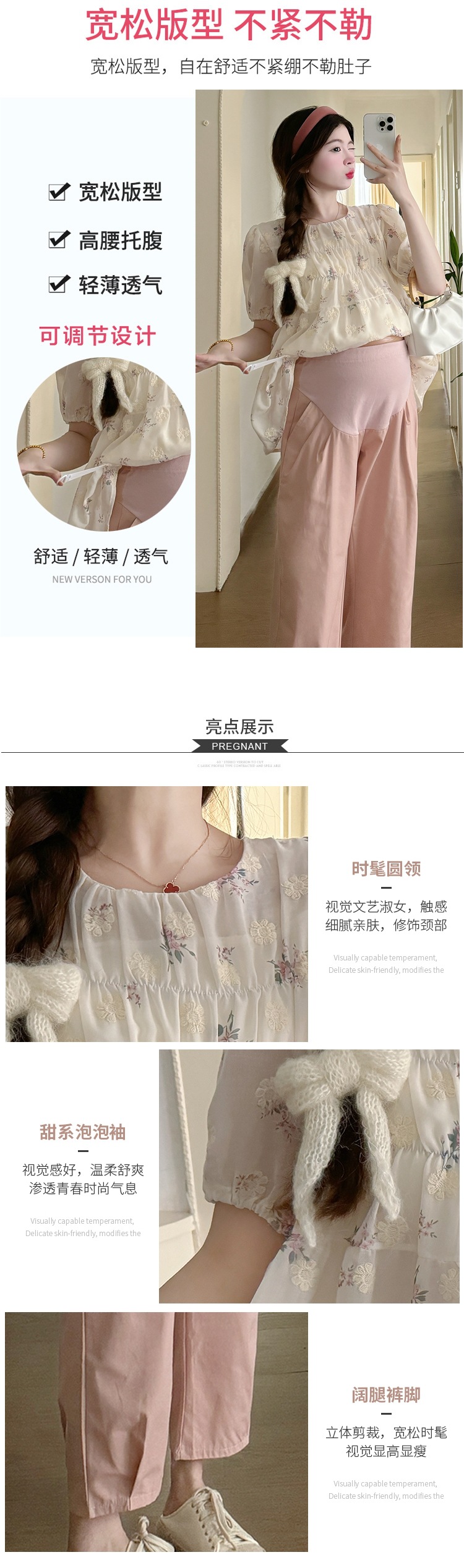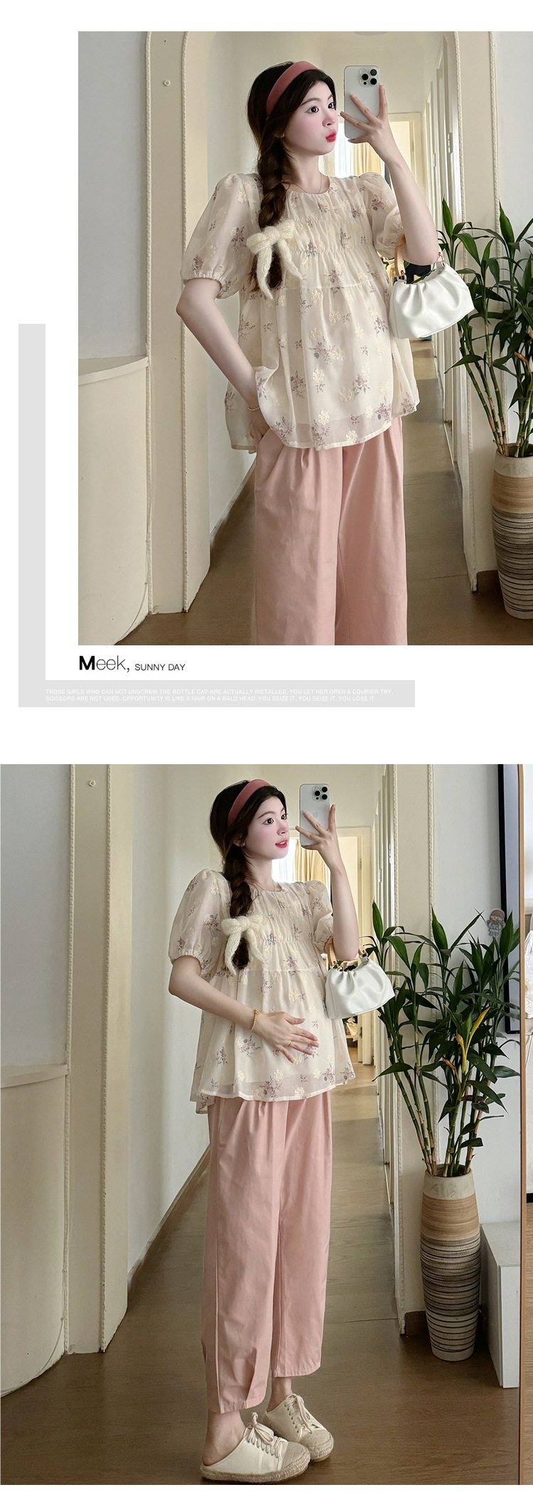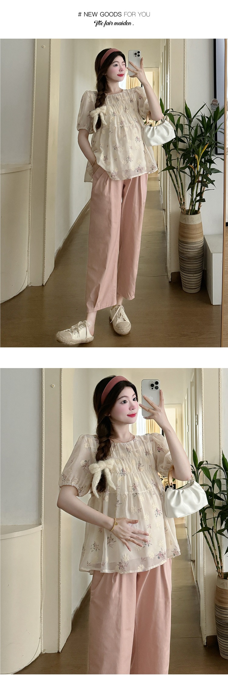 2025 여름 느슨한 달콤한 꽃 부드러운 인형 셔츠 캐주얼 오버볼 임신 여성 투피스 세트스토어 가기