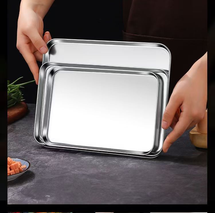 304 스테인리스 트레이, 오일 컨트롤 랙 포함, 평평한 사각 트레이, 케이크 베이킹 트레이, 물 필터링 쌀국수 트레이, 양념 트레이, 상업용스토어 가기