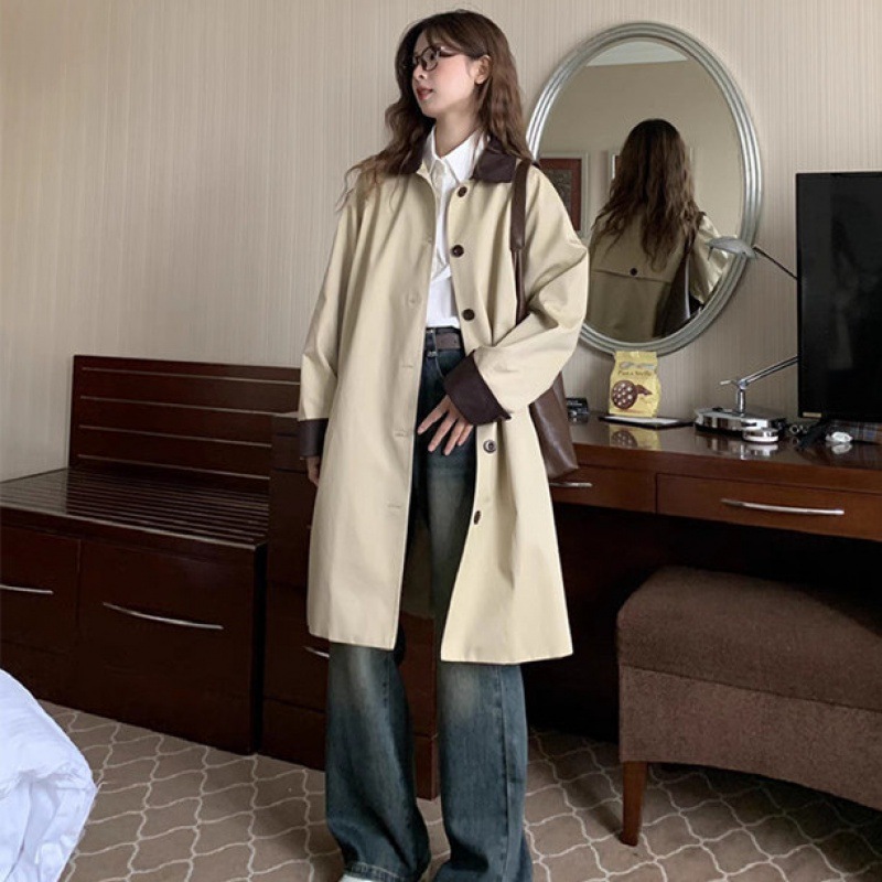 콘트라스트 컬러 중장 레트로 코트 2025 봄과 가을 새로운 한국 디자인 센스 니쉬 밀크 웨어스토어 가기