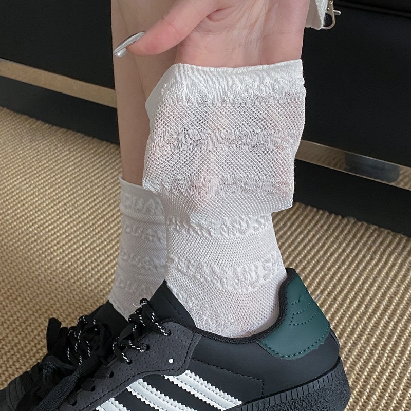 봄과 여름 프랑스 단색 뼈없는 주름 흰색 여성 양말 다재다능한면 중간 튜브 양말 메쉬 얇은 한국 케이크 양말