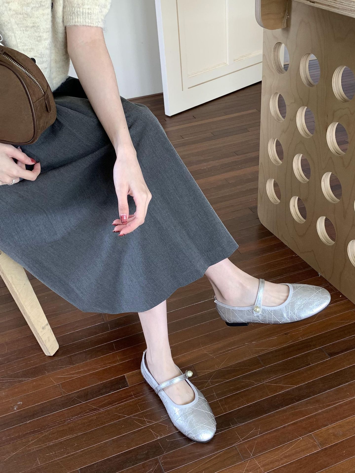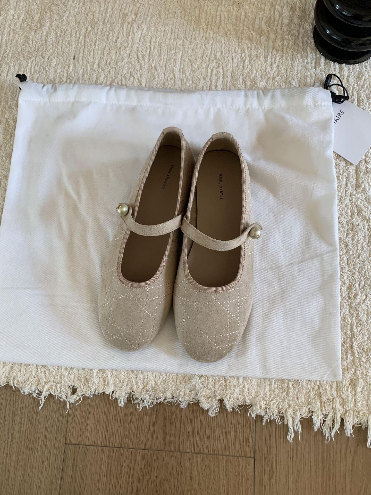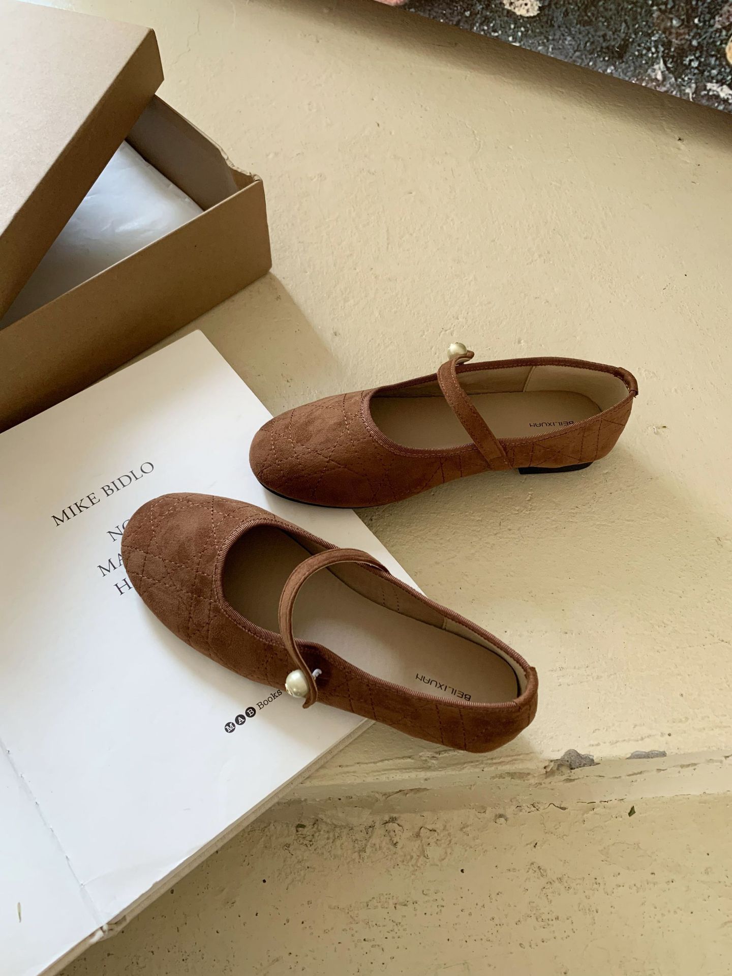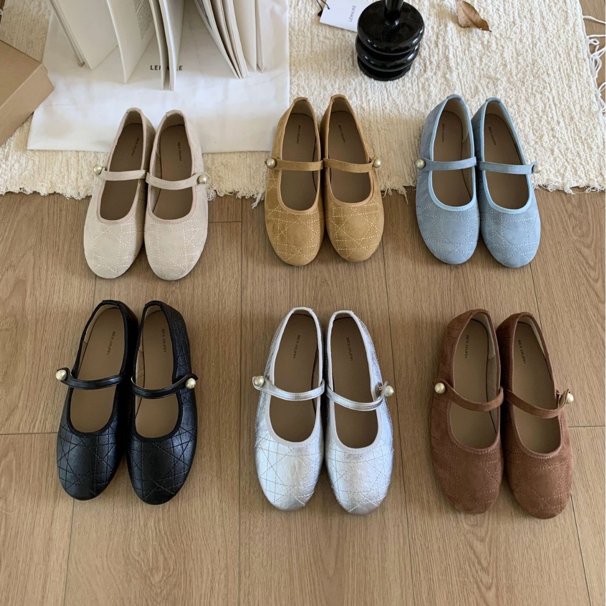 치마와 함께 여성용 봄 부드러운 밑창 구슬 활 로퍼 발레 슈즈