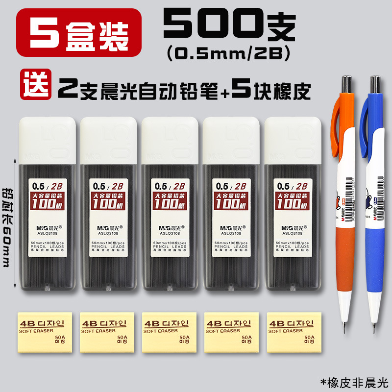 • 0.7/2B 5박스(500개) 무료 모닝 라이트 자동 연필 2개 + 지우개 5개