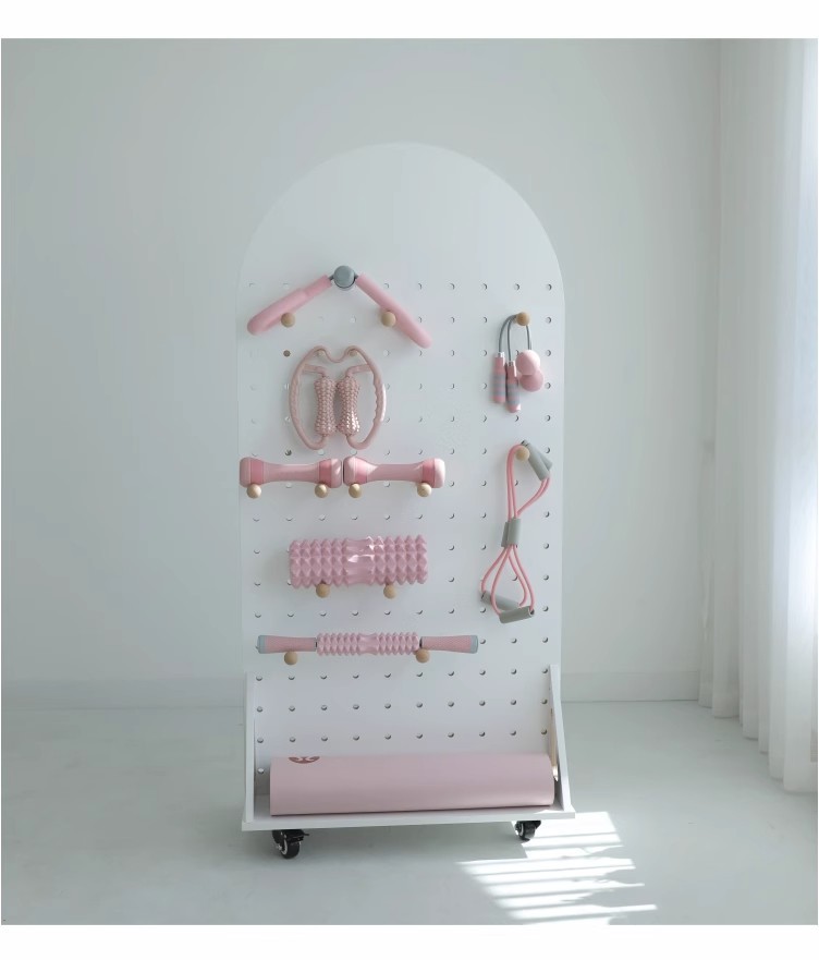 피트니스 장비를위한 단단한 나무 구멍 보드 요가 스포츠 저장 랙 가정용 수직 이동식 바닥 저장 무료 배송스토어 가기