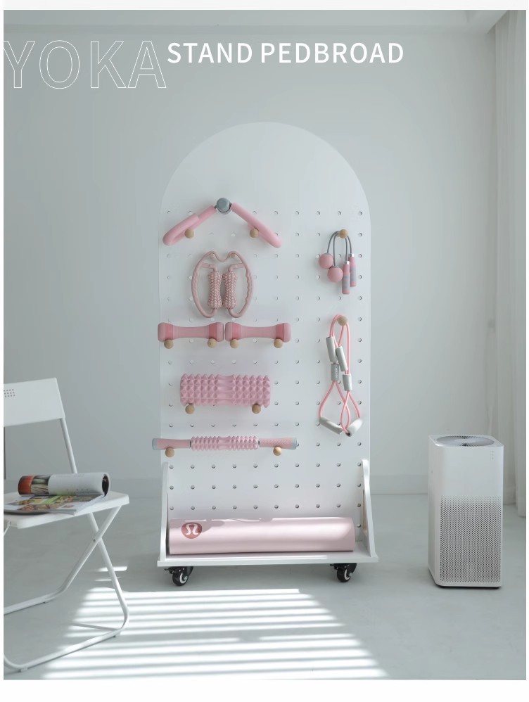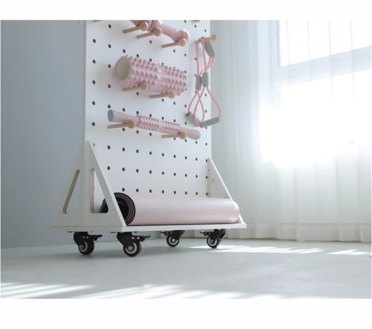피트니스 장비를위한 단단한 나무 구멍 보드 요가 스포츠 저장 랙 가정용 수직 이동식 바닥 저장 무료 배송