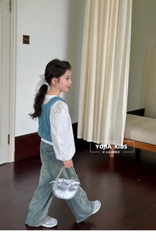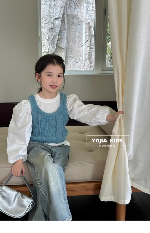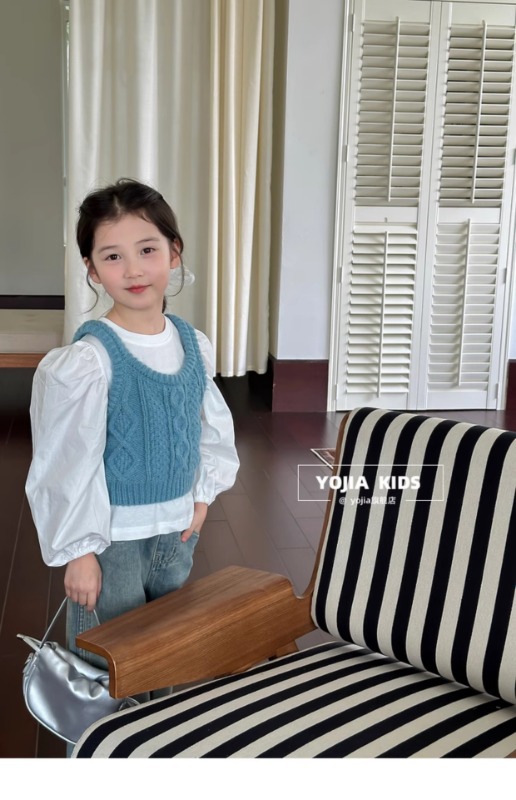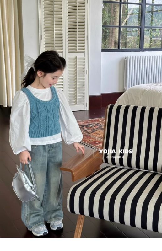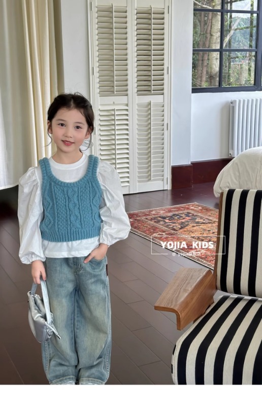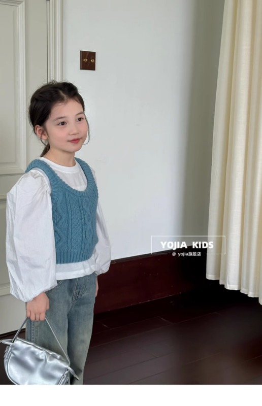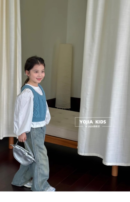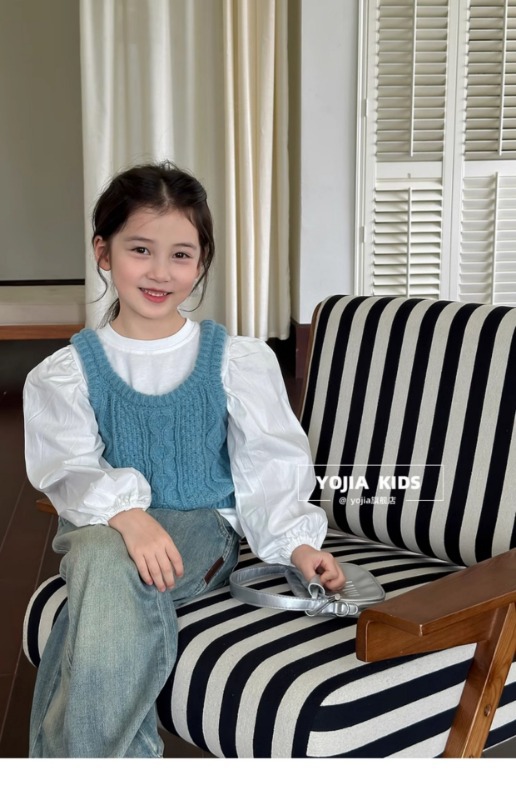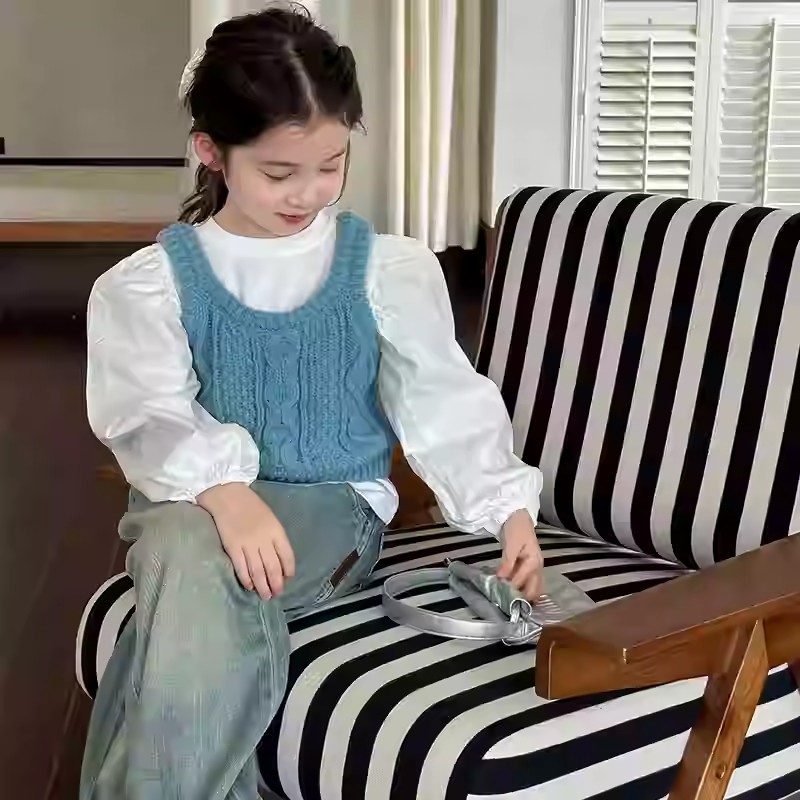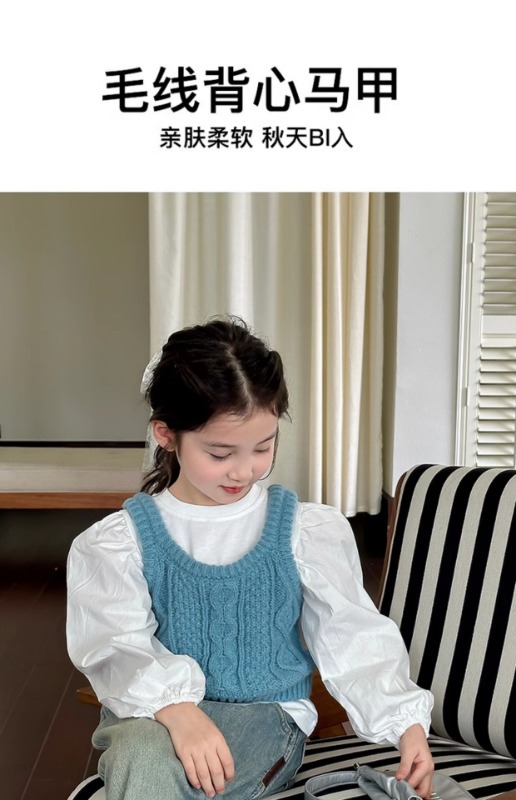 소녀 니트 조끼 봄 2025 새로운 서양식 중 큰 어린이 양모 슬링 어린이 스웨터 웨이스트 코트 블루스토어 가기