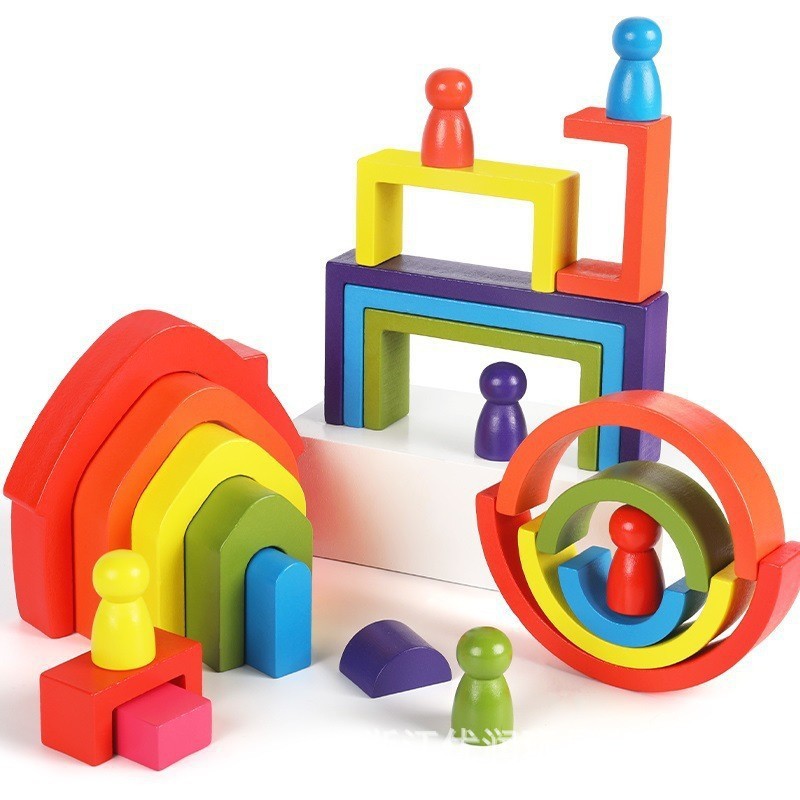 국경 간 레인보우 빌딩, 조기 교육 완구 차단 어린이 교육 건물 무지개 장난감 Ins 바람 조기 교육 퍼즐스토어 가기
