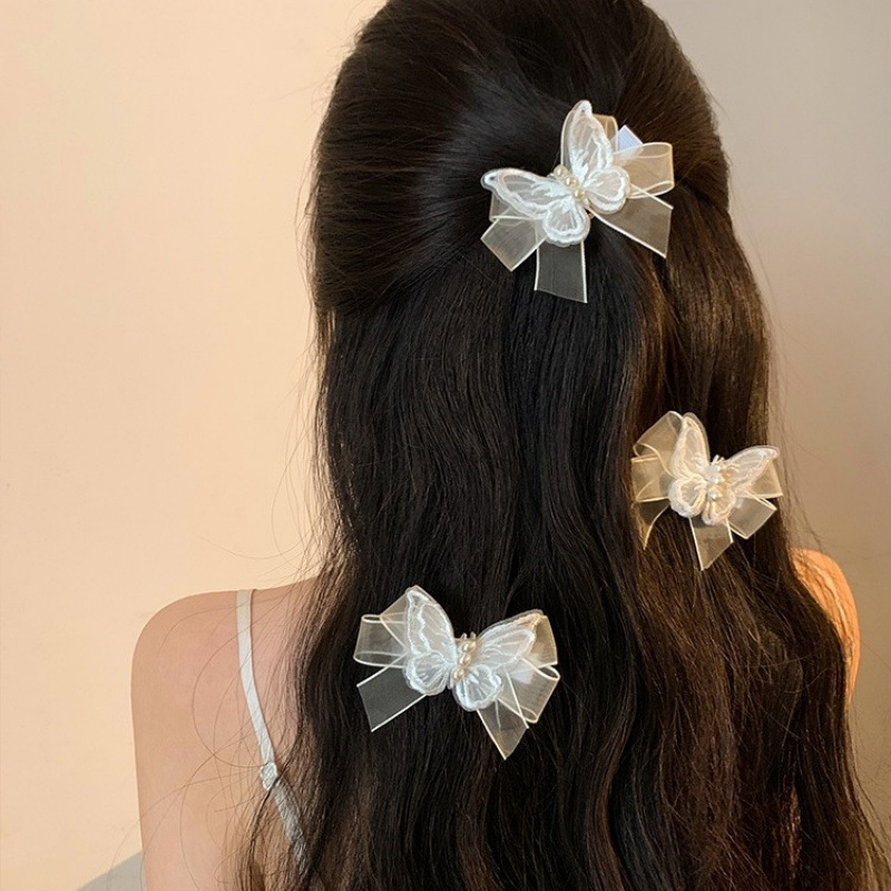슈퍼 요정 화이트 메쉬 나비 진주 머리핀 여성용 모리 요정 활 스몰 사이즈 헤어핀 사이드 헤어 헤드웨어스토어 가기