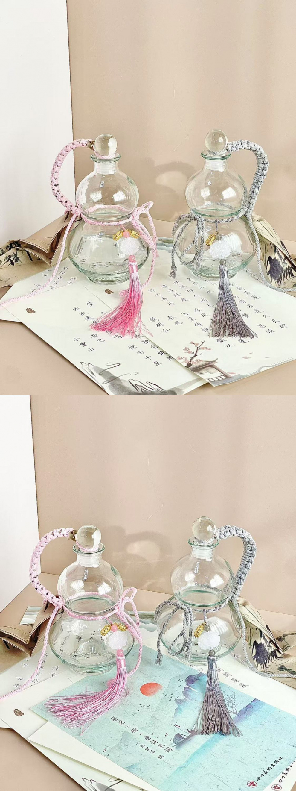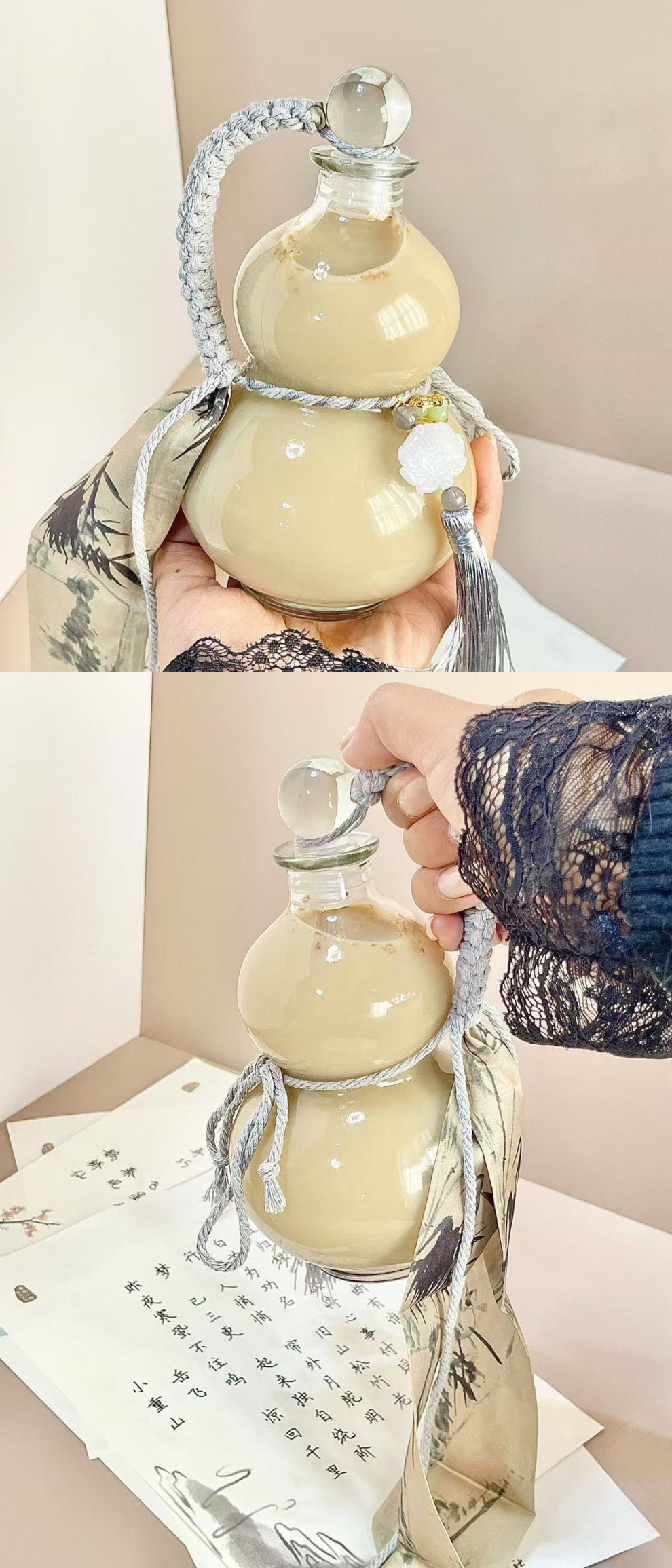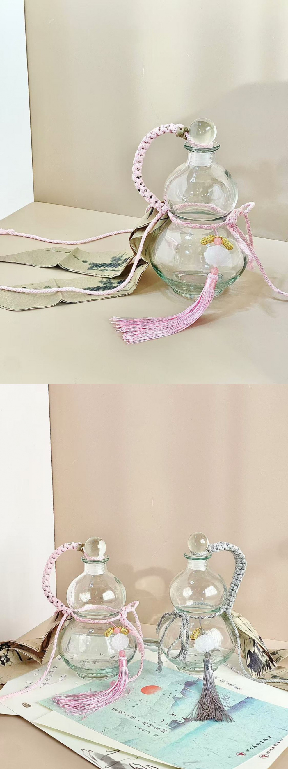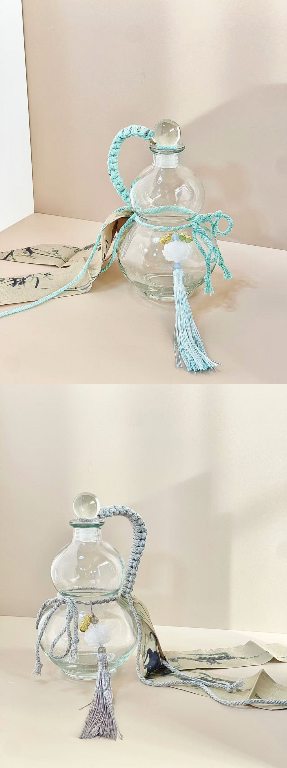 • 250ml 중국식 회색 조롱박 병 [타이 리본 액세서리 포함]
