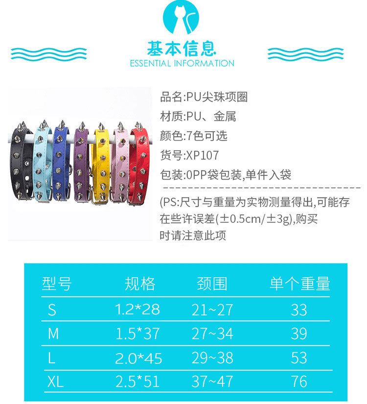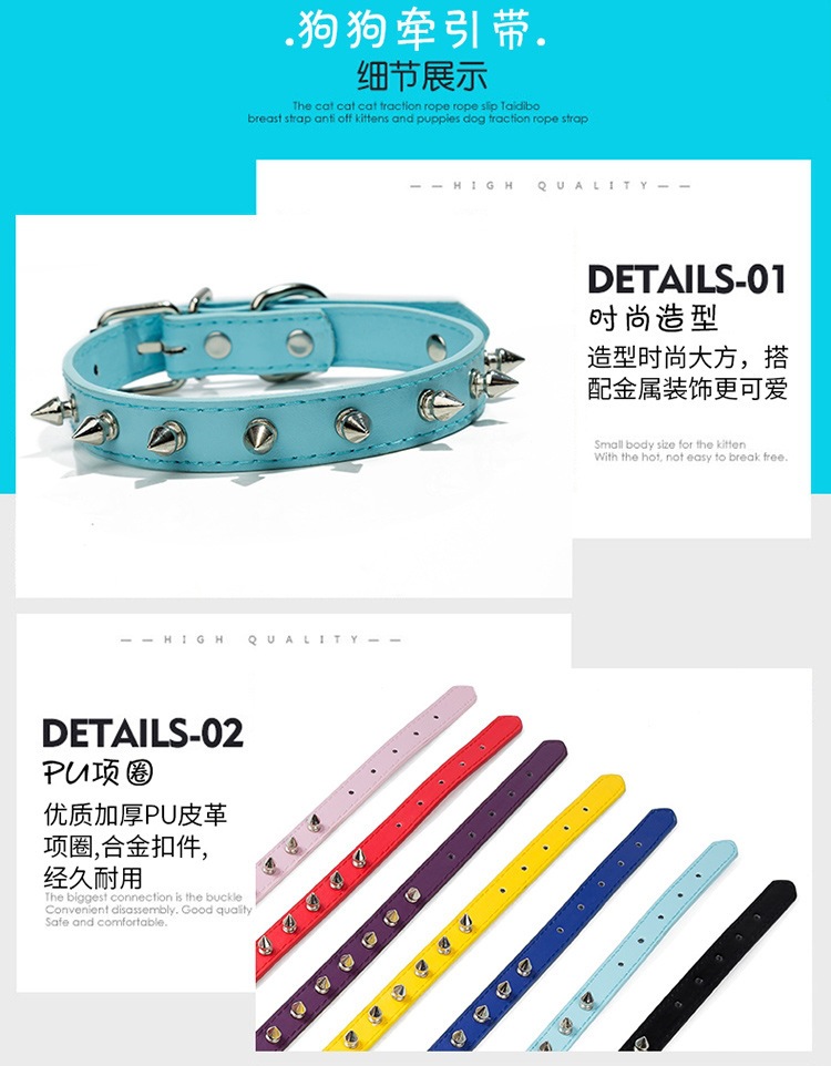강아지 물림 방지 목걸이, 소형 및 중형견용 리벳 목걸이, 내구성 있는 고양이 목걸이, 애완동물 용품 가죽 목걸이