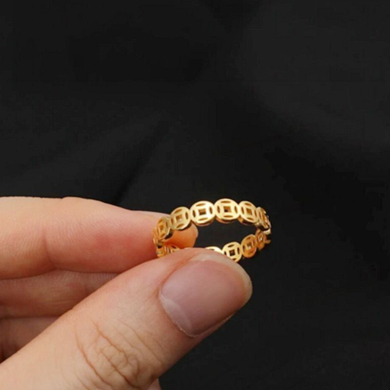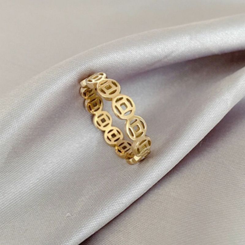 커플 링 레트로 할로우 쥬얼리 티타늄 스틸 기하학적 포춘 틈새 인 구리 전송 링