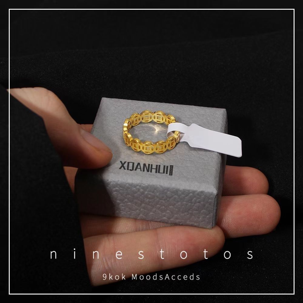 커플 링 레트로 할로우 쥬얼리 티타늄 스틸 기하학적 포춘 틈새 인 구리 전송 링스토어 가기