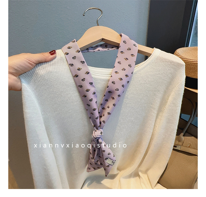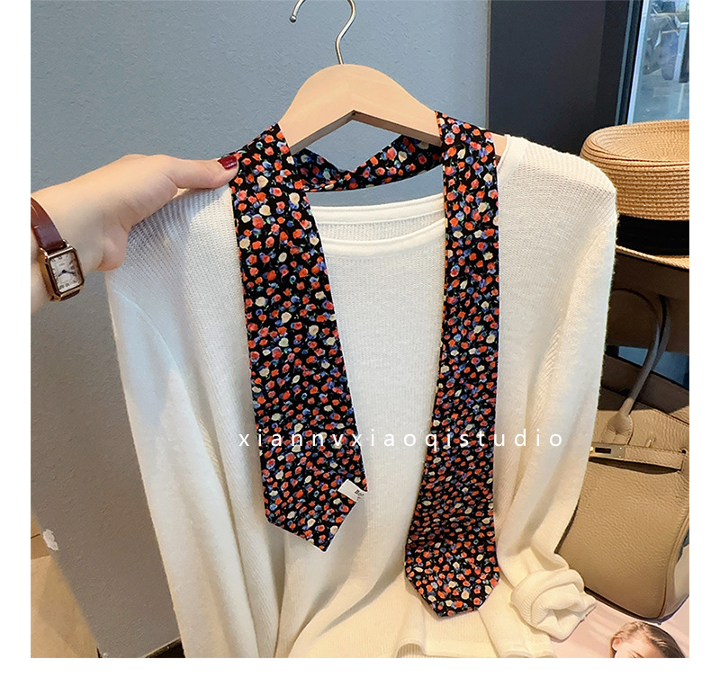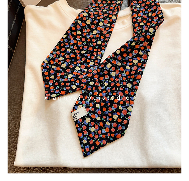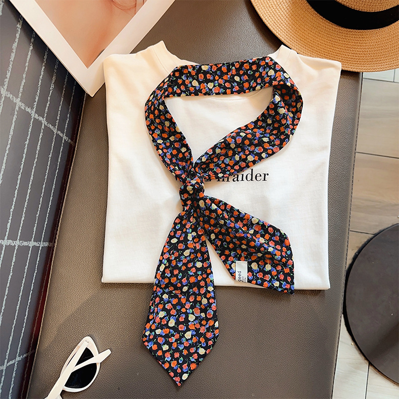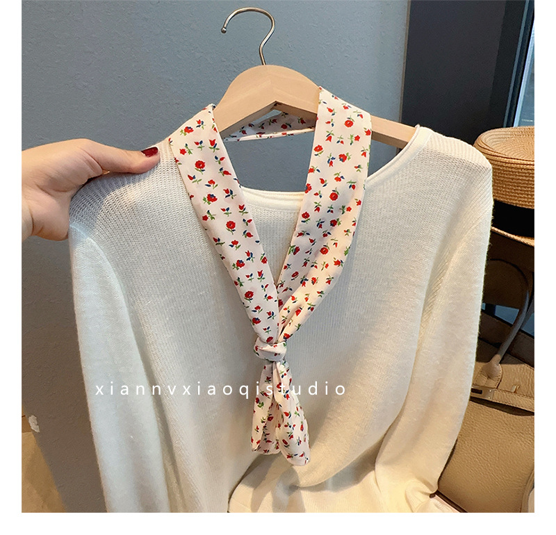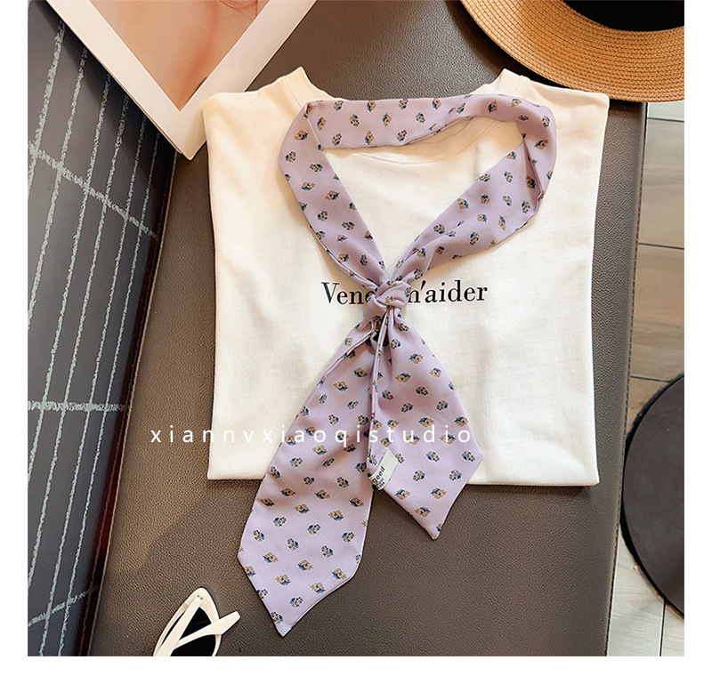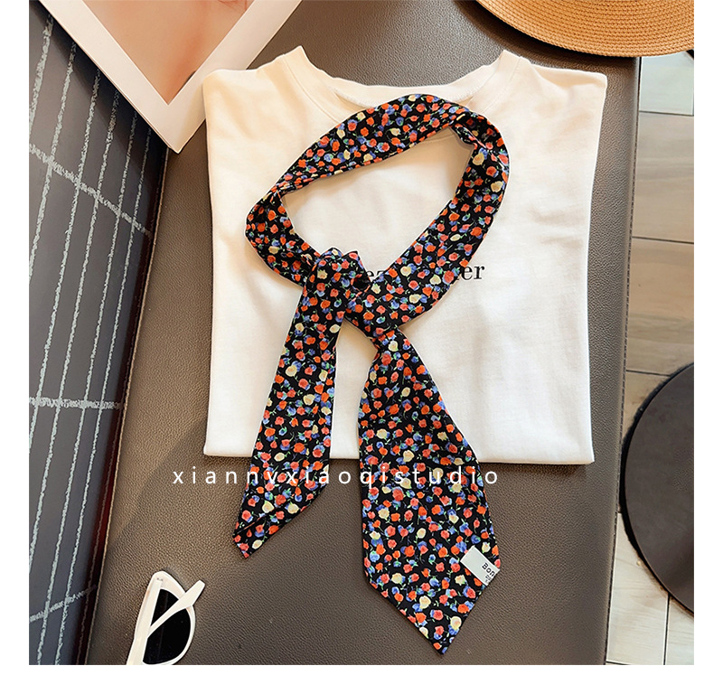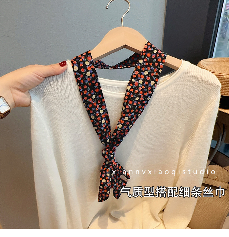 2025 새로운 빈티지 작은 장미 스카프 여성 리본 스카프 유행 올 매치 스카프 목 보호 장식 타이 백 리본