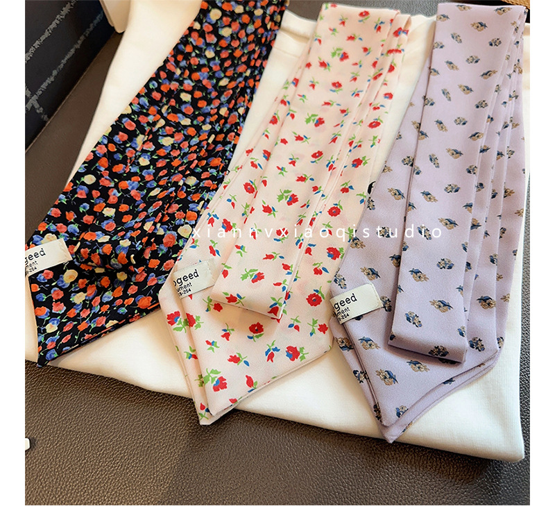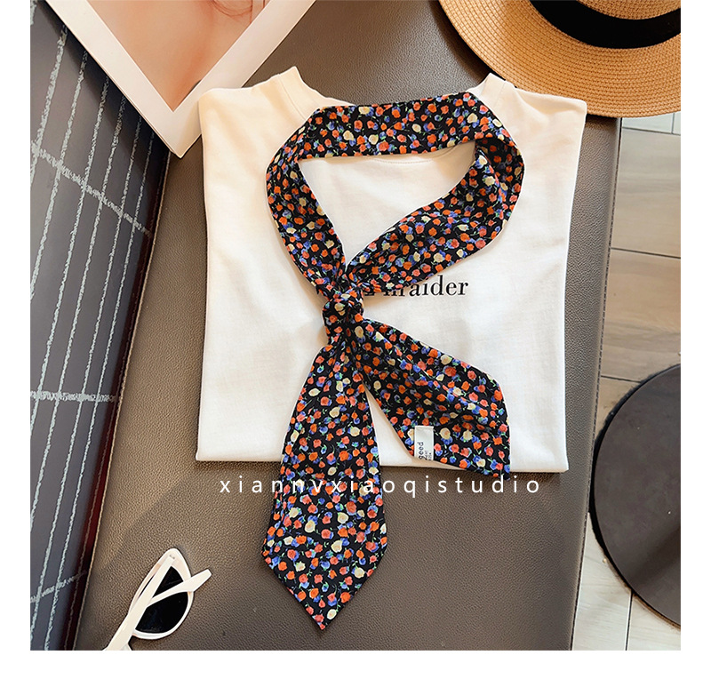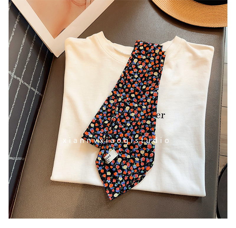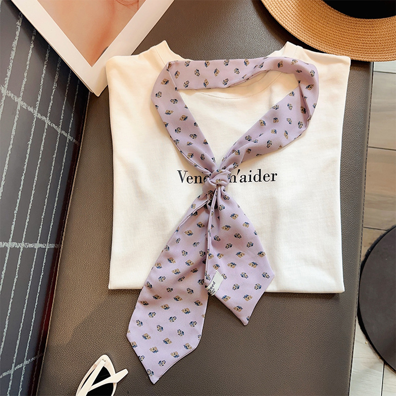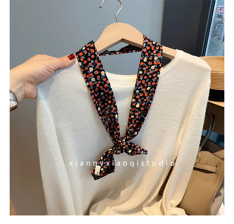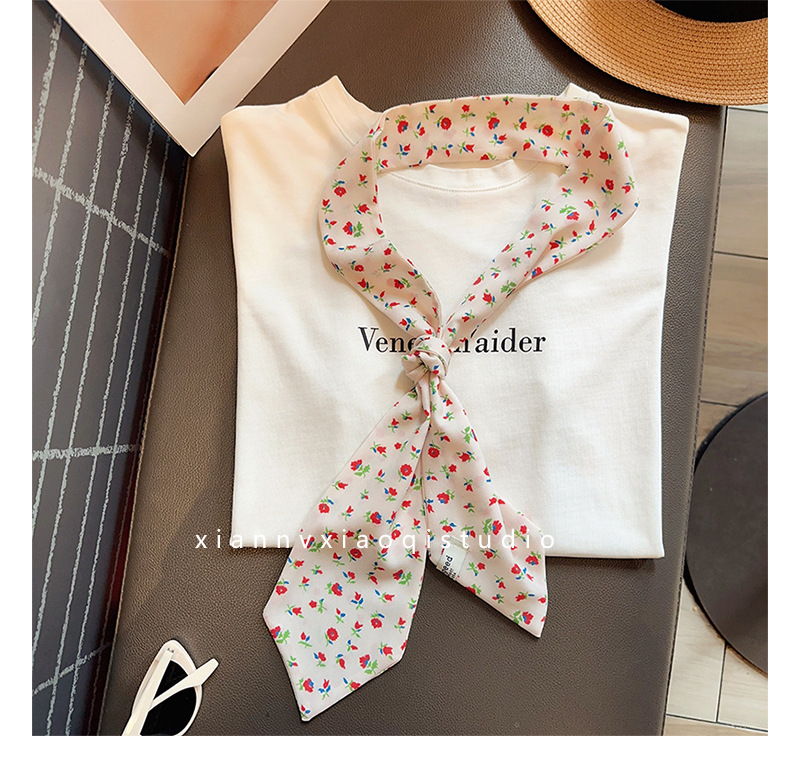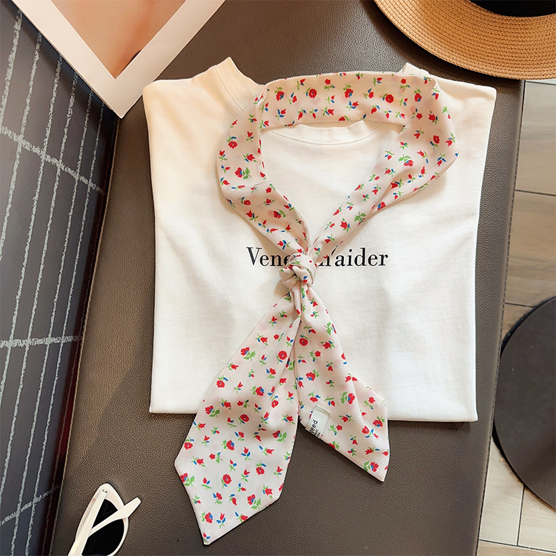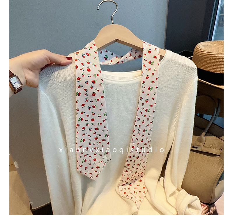 2025 새로운 빈티지 작은 장미 스카프 여성 리본 스카프 유행 올 매치 스카프 목 보호 장식 타이 백 리본