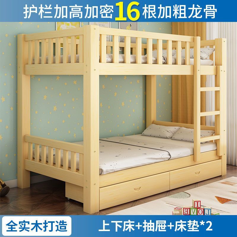 GB 풀 솔리드 우드 벙크 침대 이층 침대 어린이 성인 나무 침대 작은 아파트 2 층 벙크 높고 낮은 침대 어머니 침대스토어 가기