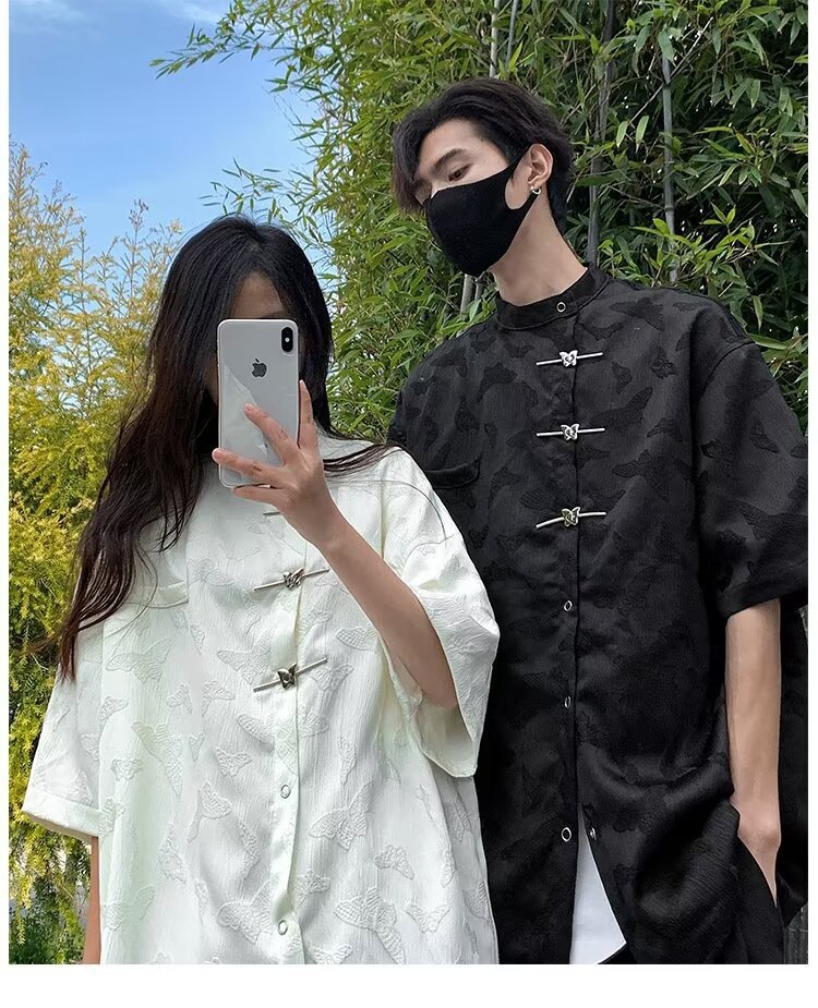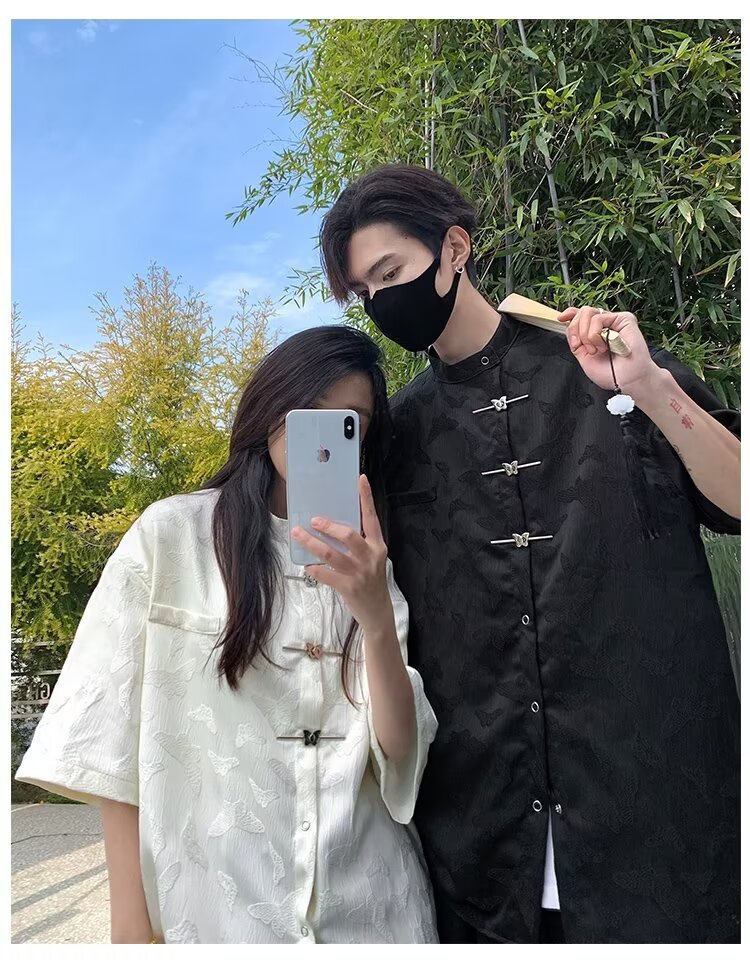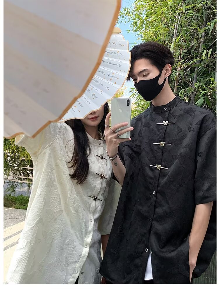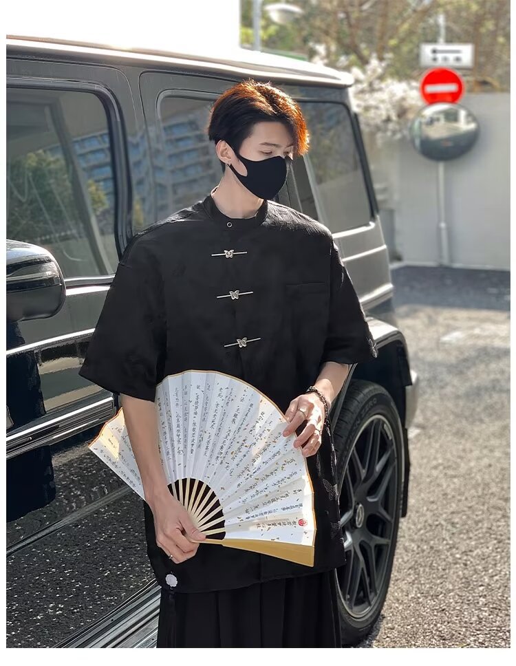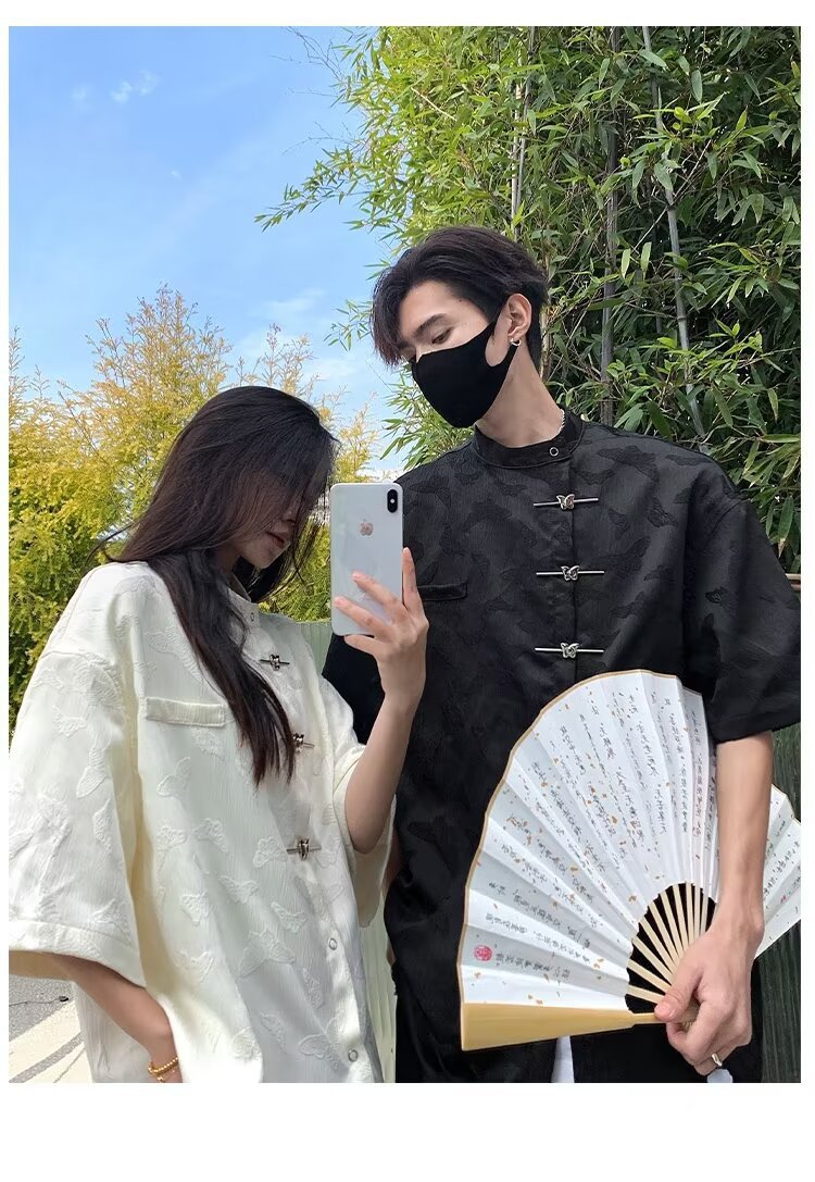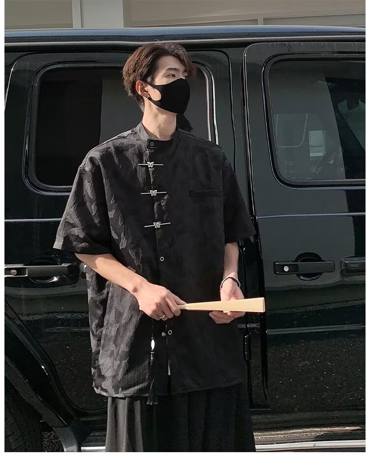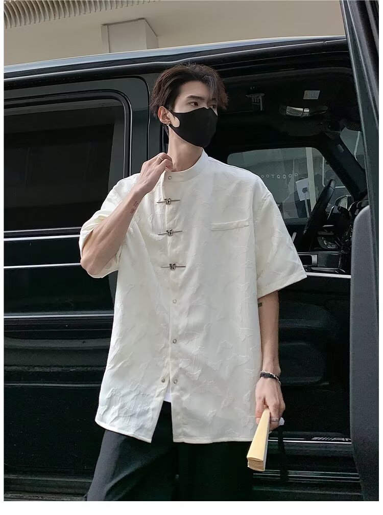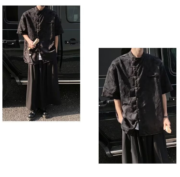 새로운 중국 스타일 국가 스타일 짧은 소매 셔츠 남자의 2024 여름 새로운 디자인 감각 틈새 느슨한 중산 세트 셔츠 재킷스토어 가기