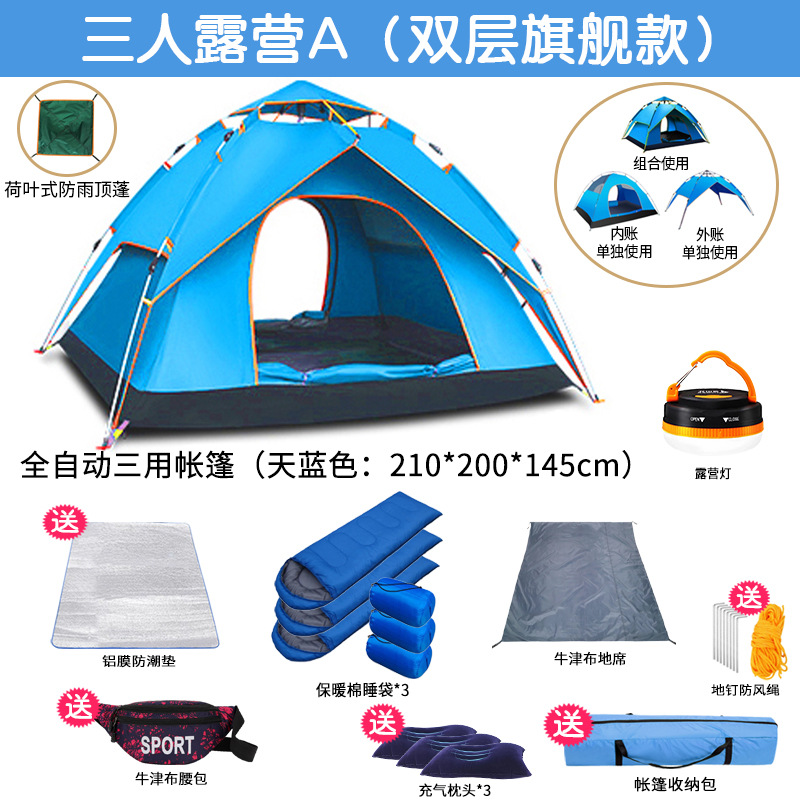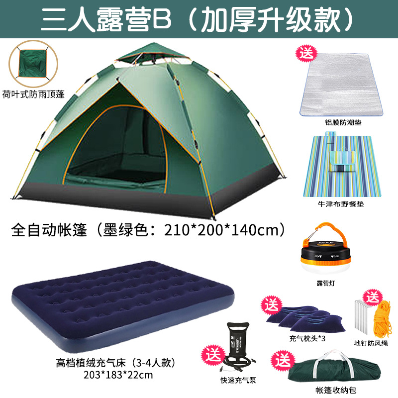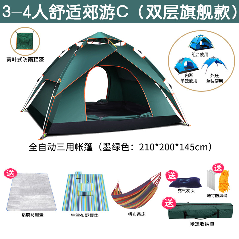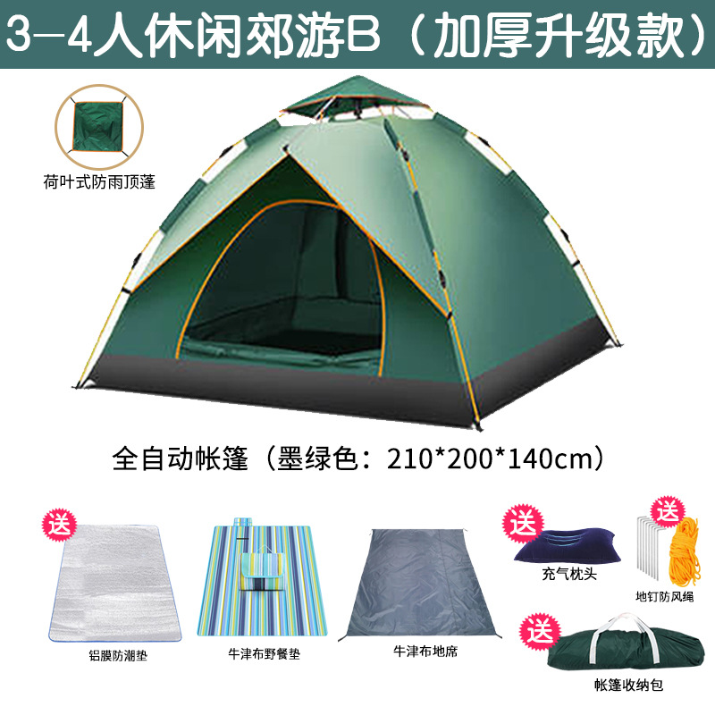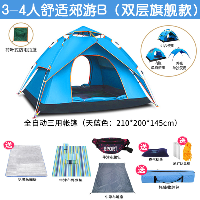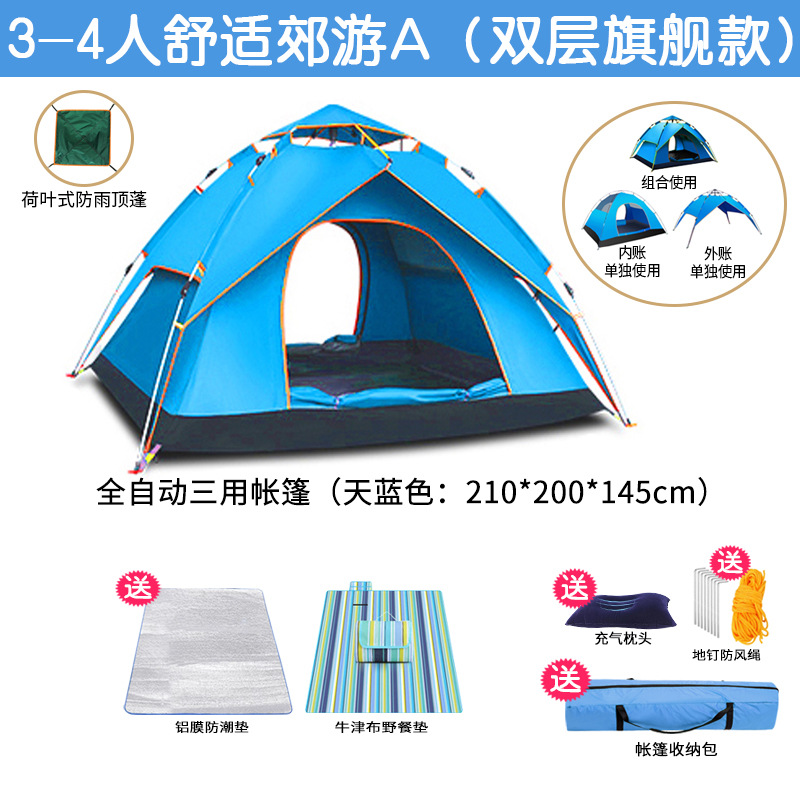 빠른 오픈 야생 낚시 캠핑 2 더블 캠핑 하룻밤 텐트 야외 3-4 접히는 완전 자동 두꺼운 비방스토어 가기