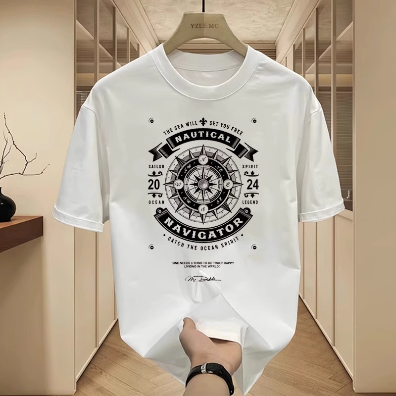 유럽과 미국의 패션 브랜드 반팔 Ins Pure Cotton Summer 새로운 남성용 프린트 티셔츠 남성용 트렌디 남성용 올 매치 라운드 넥 티셔츠스토어 가기