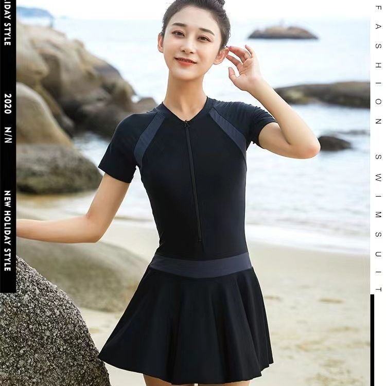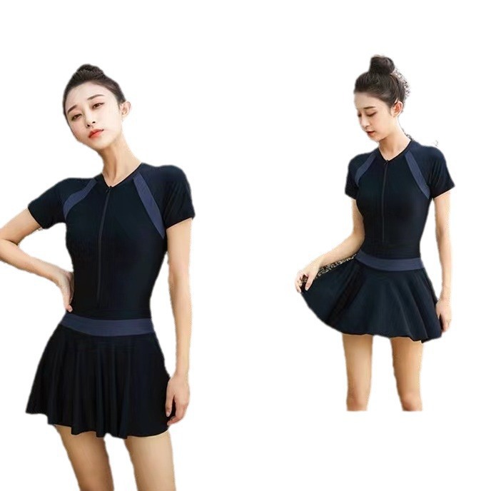 대조적 인 컬러 접합 수영복 여름 새로운 학생 스커트 스타일 보수적 수영복 가슴 패드 수영복 도매스토어 가기