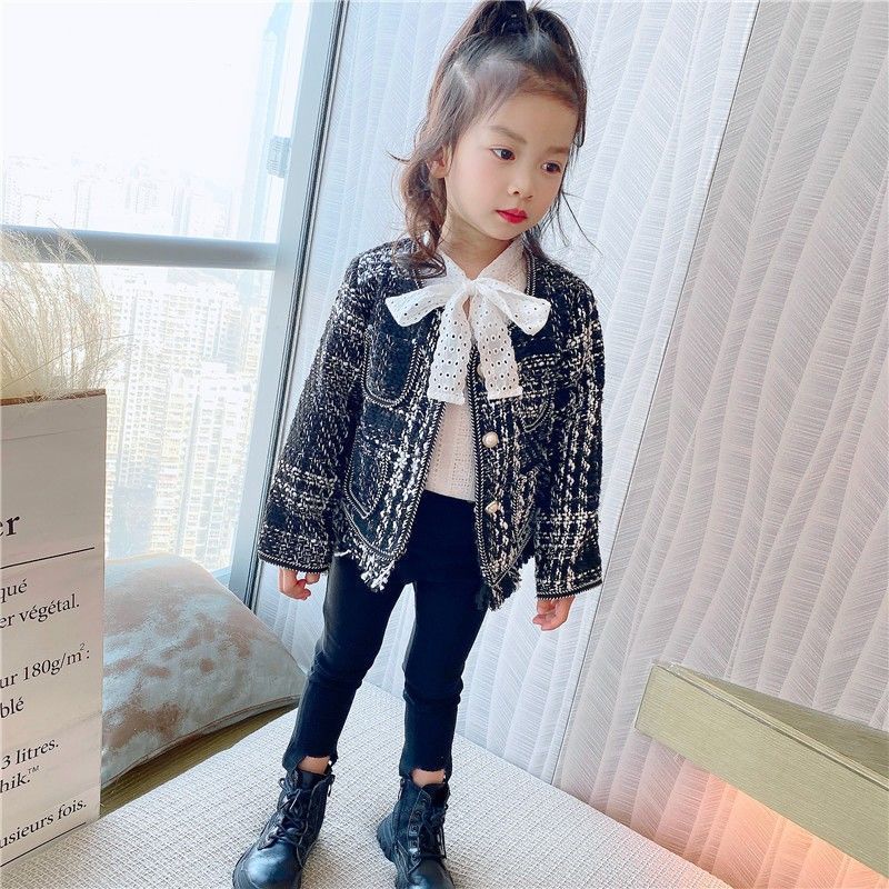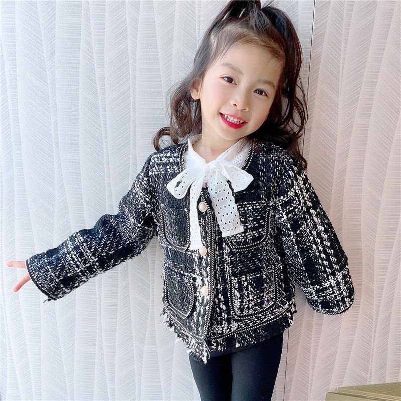 2025 한국 스타일 봄과 가을 새로운 소녀 패션 샤넬 스타일 니트 재킷 카디건 짧은 술 공주 탑