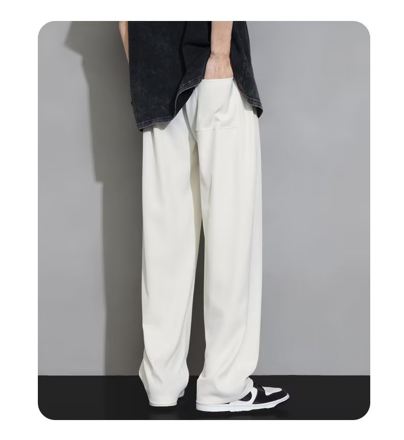 여름 아이스 실크 바지 남자 캐주얼 바지 두부 똑바로 넓은 다리 느슨한 땀 바지 얇은 검은 스포츠 바지