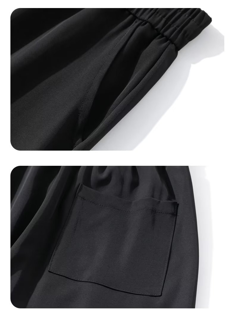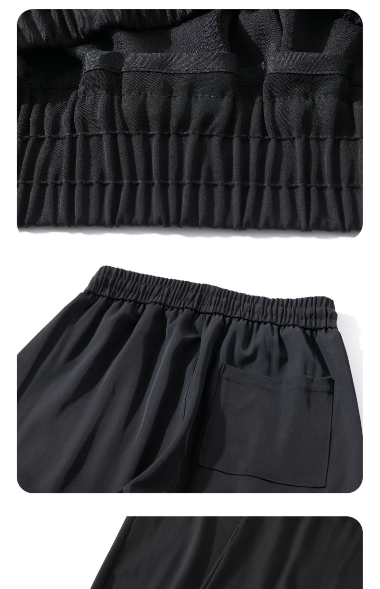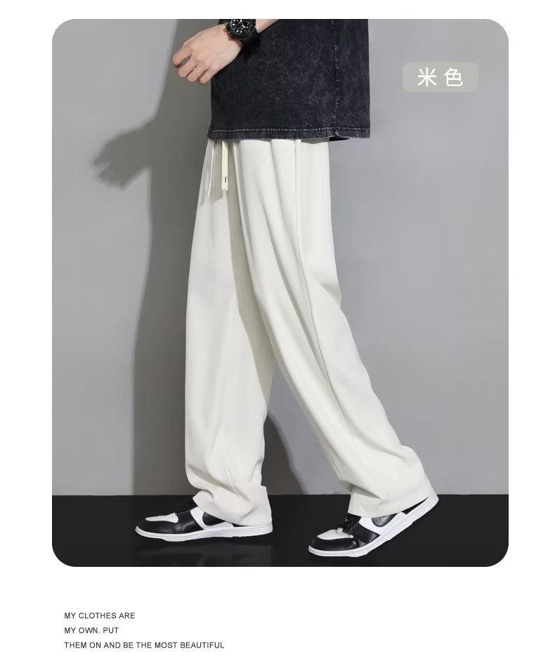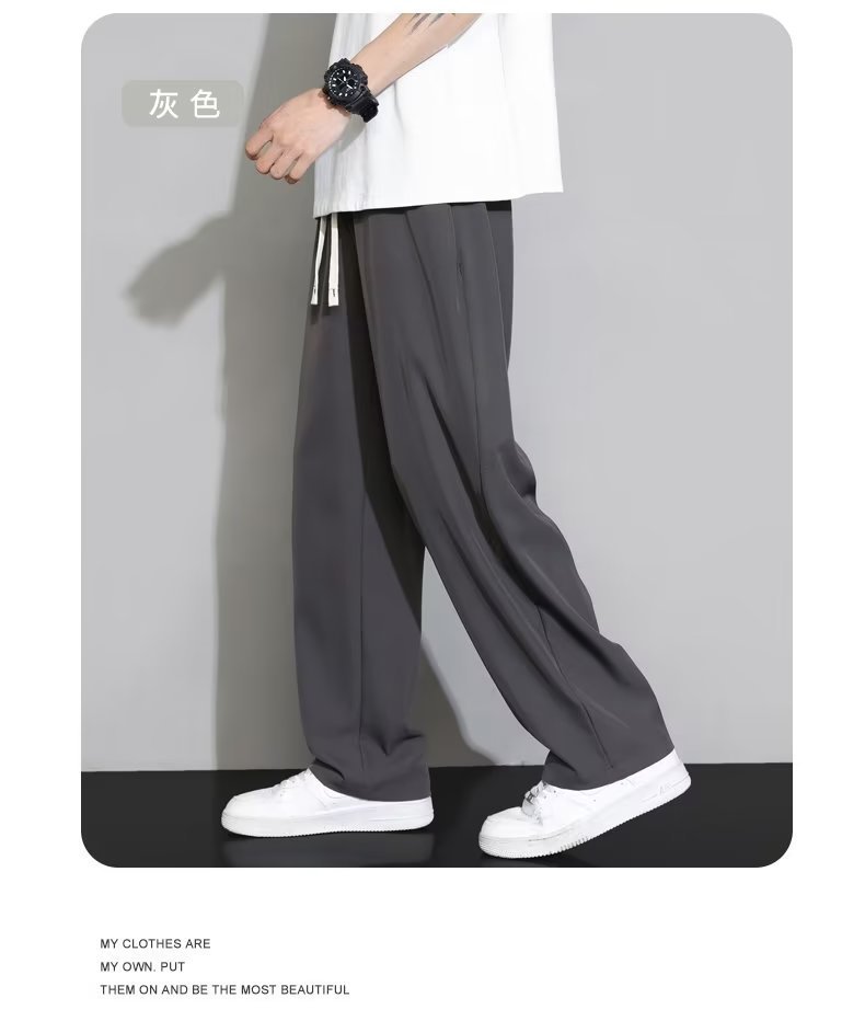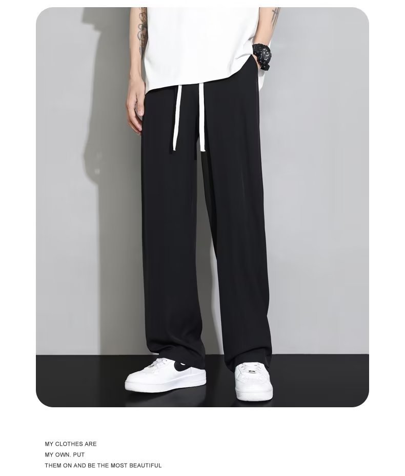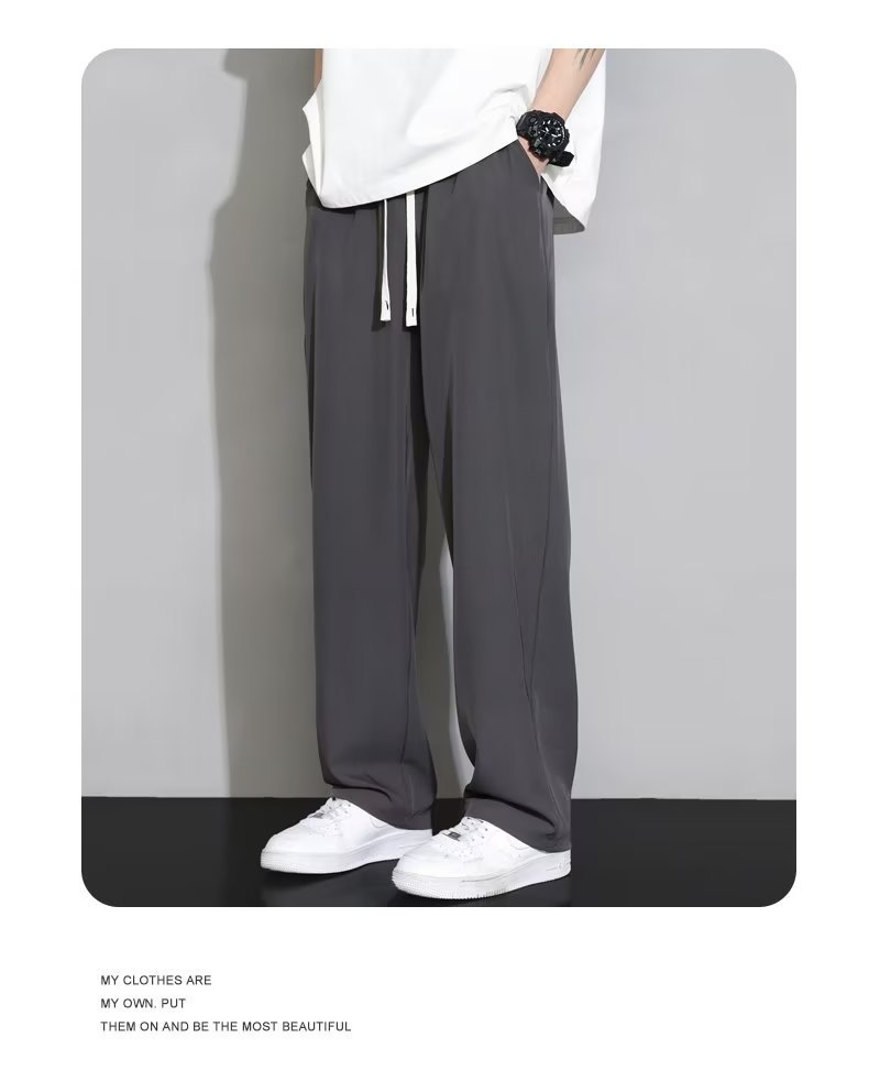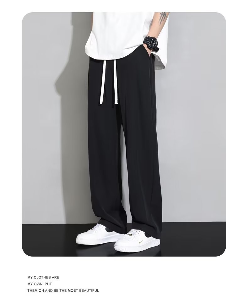 여름 아이스 실크 바지 남자 캐주얼 바지 두부 똑바로 넓은 다리 느슨한 땀 바지 얇은 검은 스포츠 바지스토어 가기