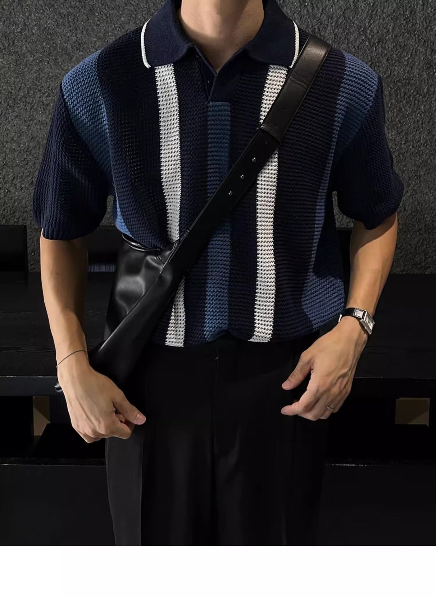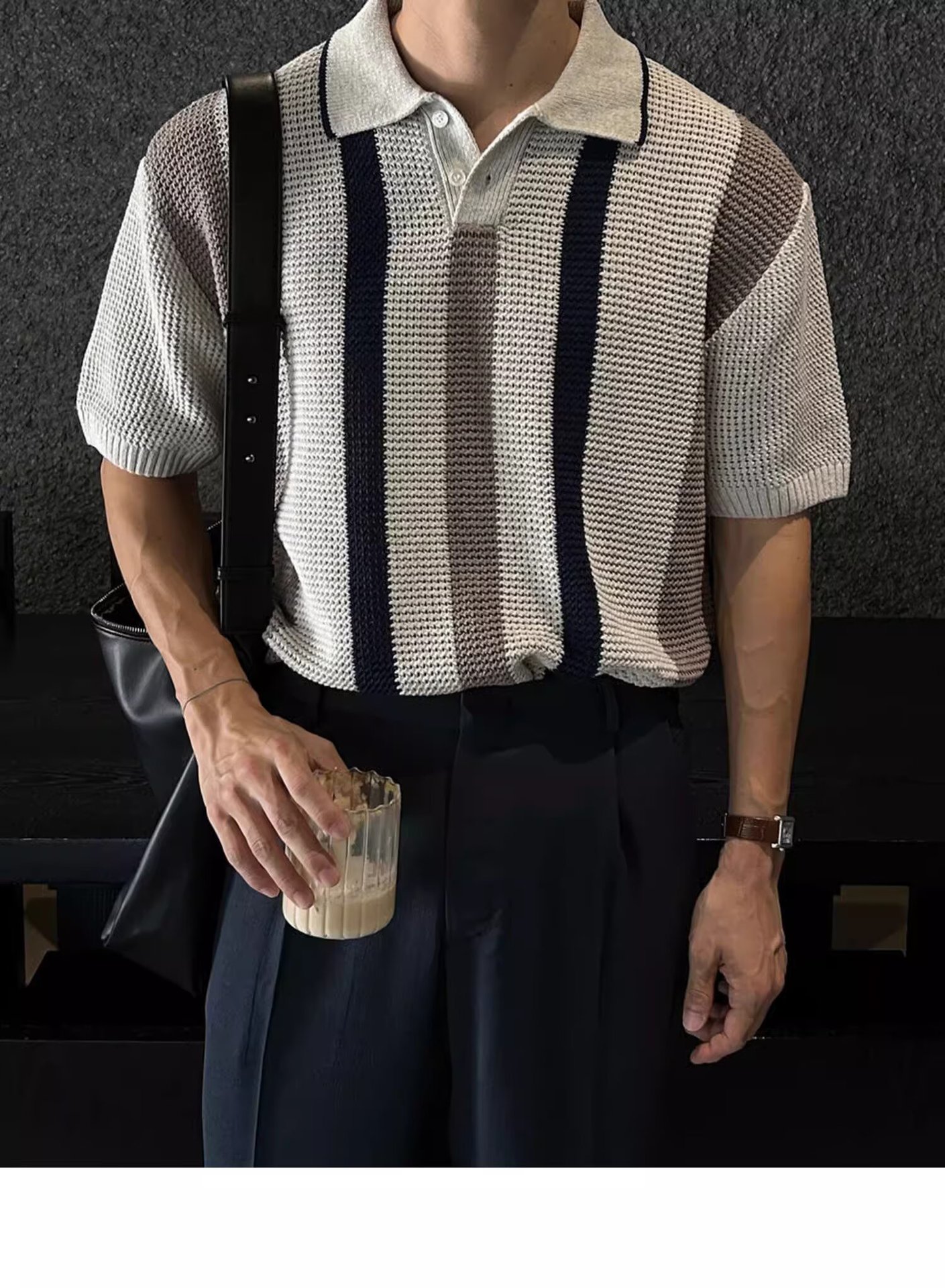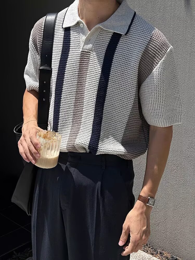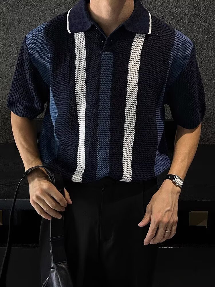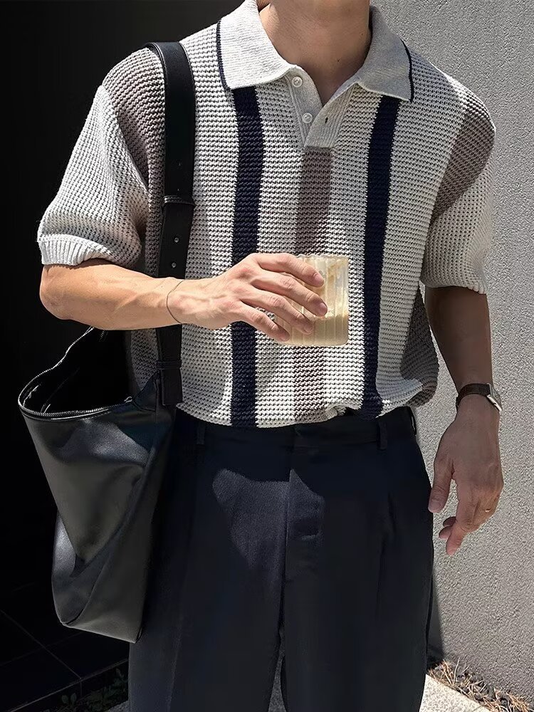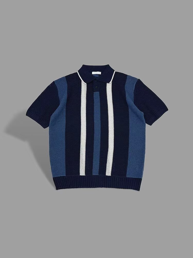 국경 간 여름 줄무늬 랩 폴로 셔츠 디자인 틈새 남자의 느슨한 니트 셔츠 한국 스타일 한국 얇은 티셔츠스토어 가기