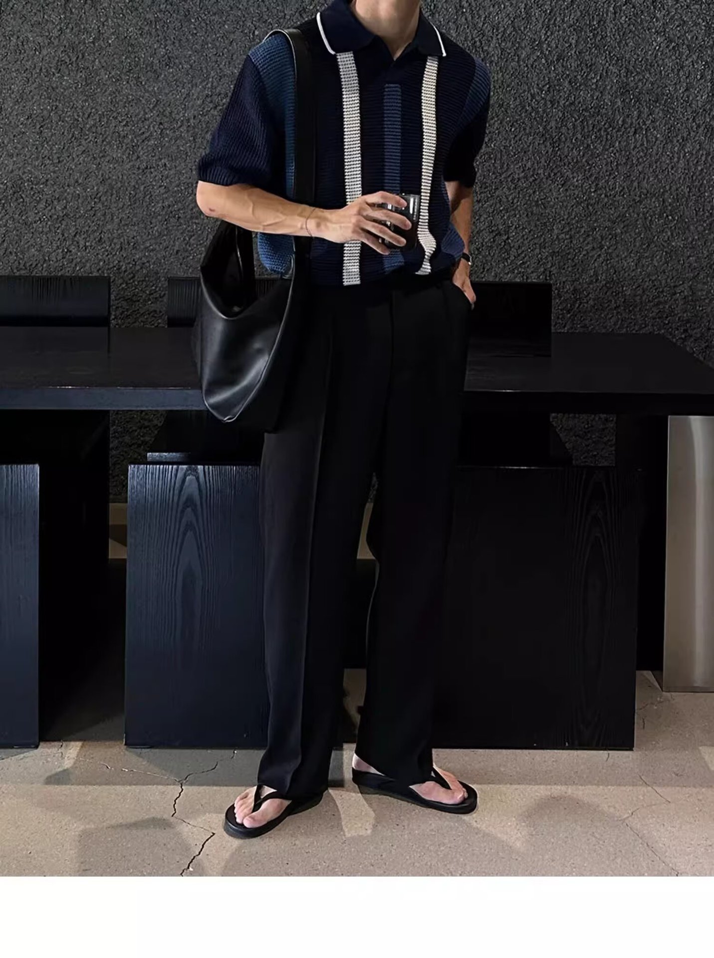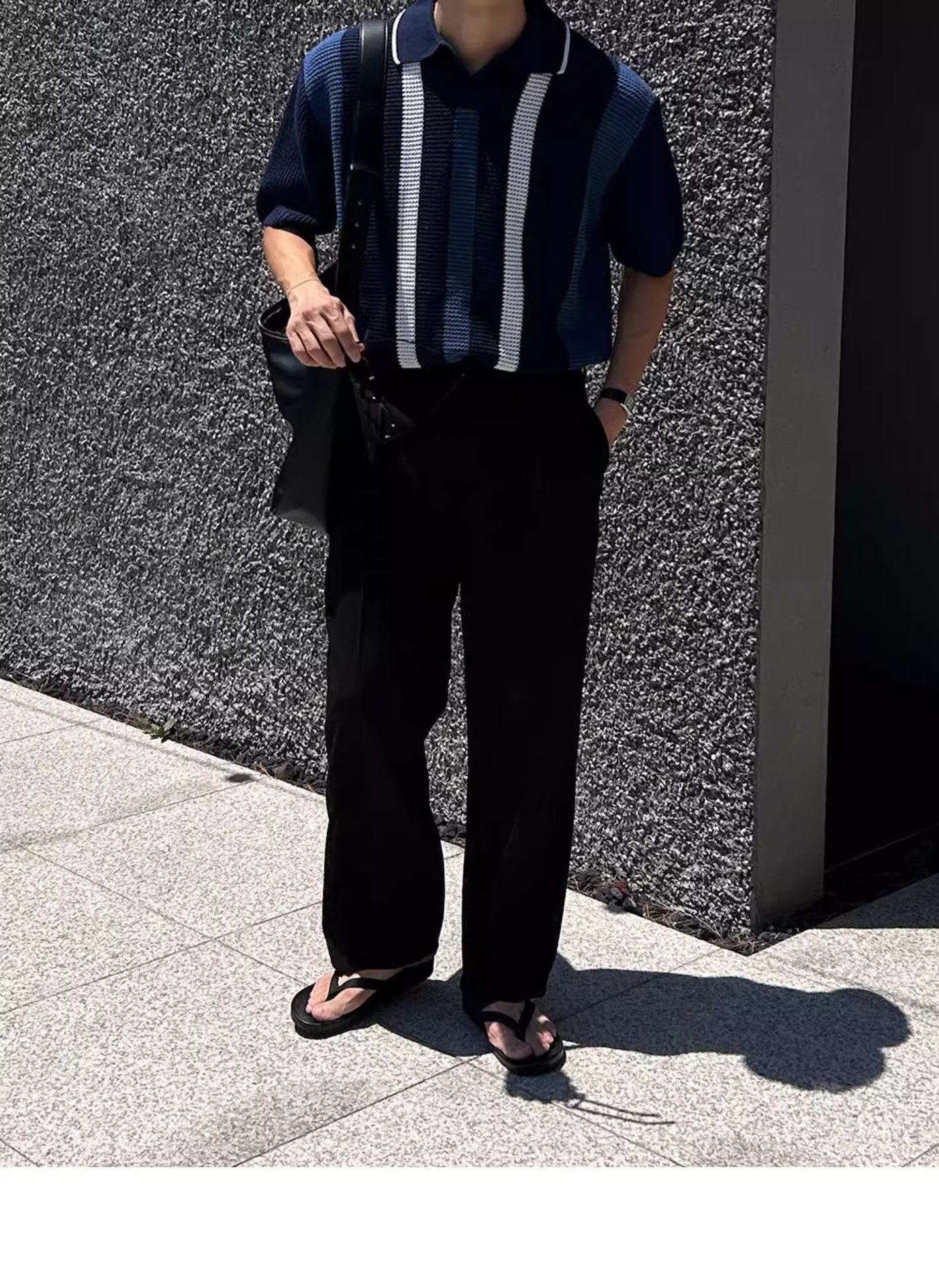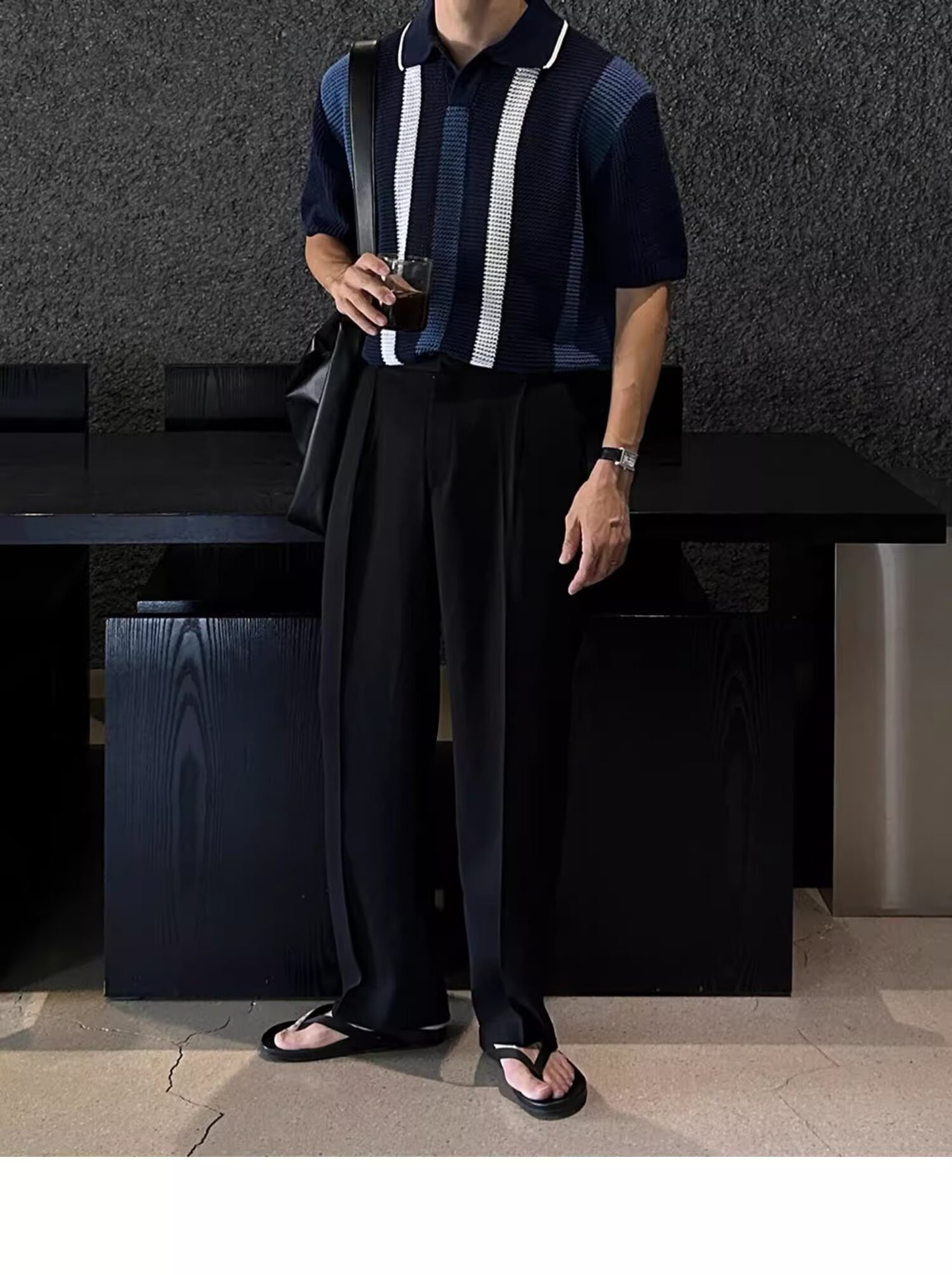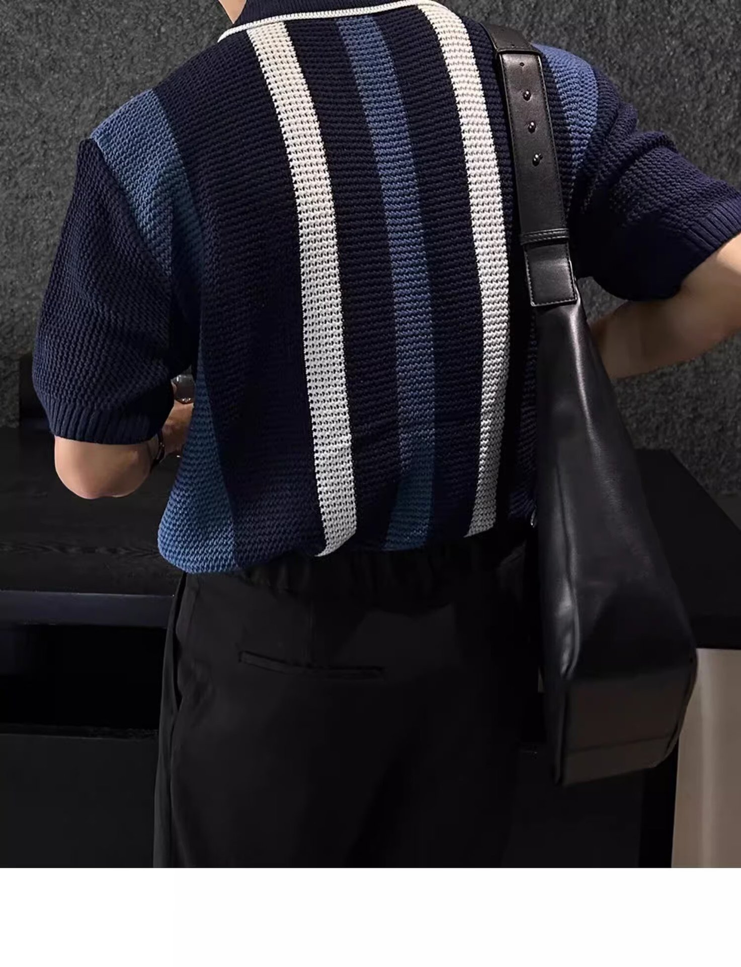 국경 간 여름 줄무늬 랩 폴로 셔츠 디자인 틈새 남자의 느슨한 니트 셔츠 한국 스타일 한국 얇은 티셔츠스토어 가기
