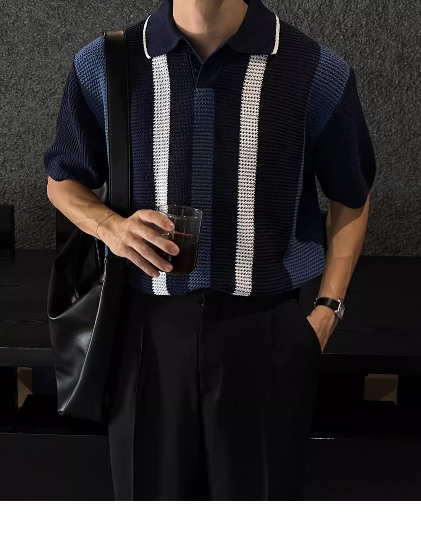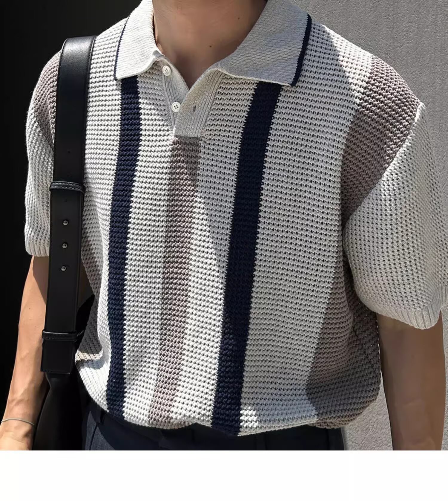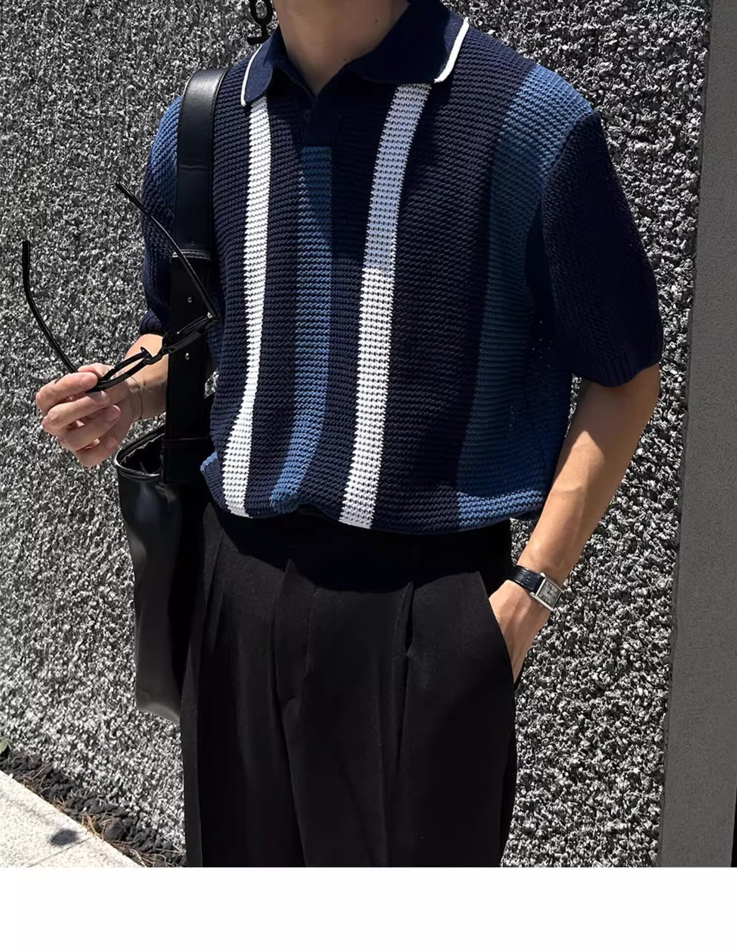 국경 간 여름 줄무늬 랩 폴로 셔츠 디자인 틈새 남자의 느슨한 니트 셔츠 한국 스타일 한국 얇은 티셔츠
