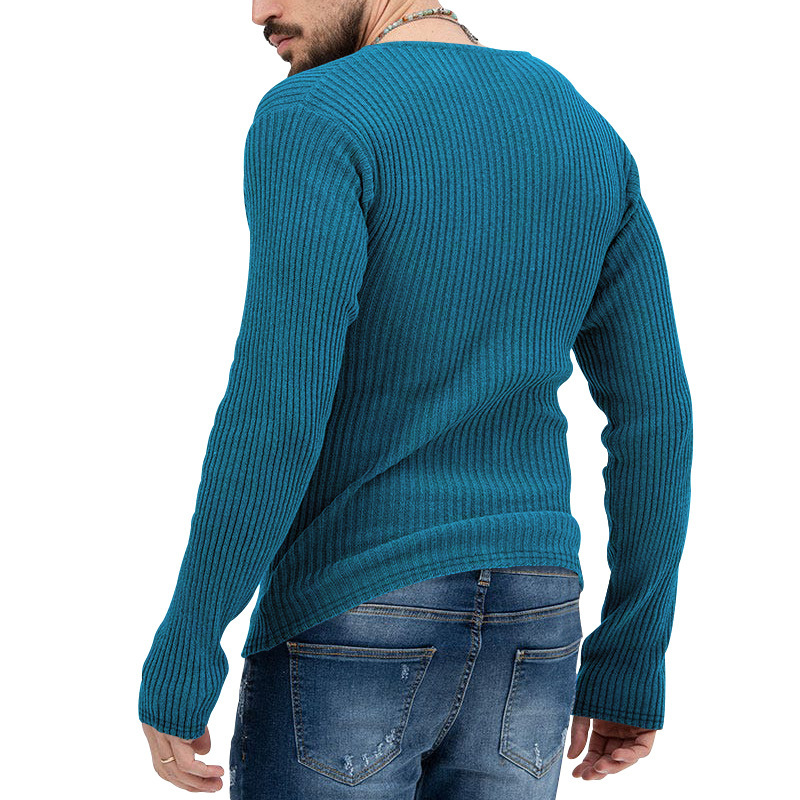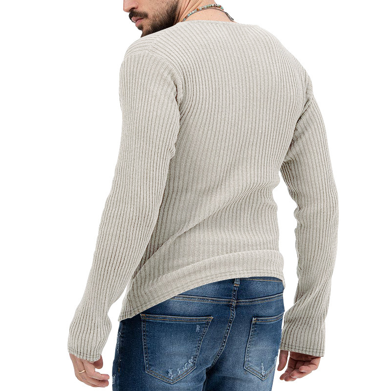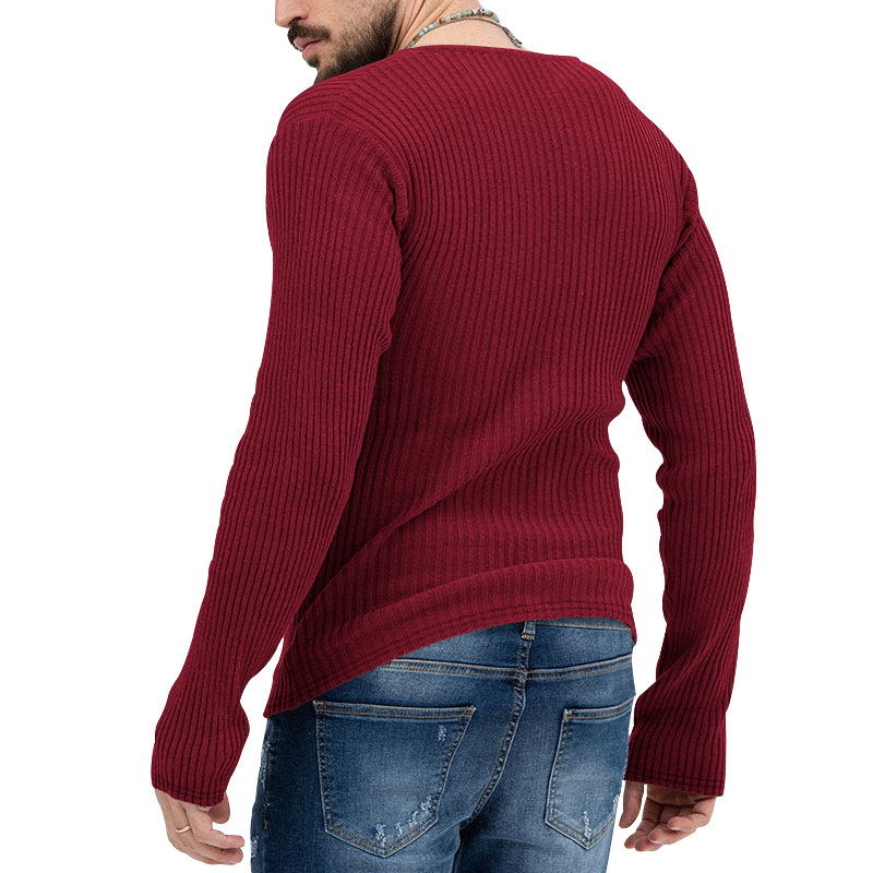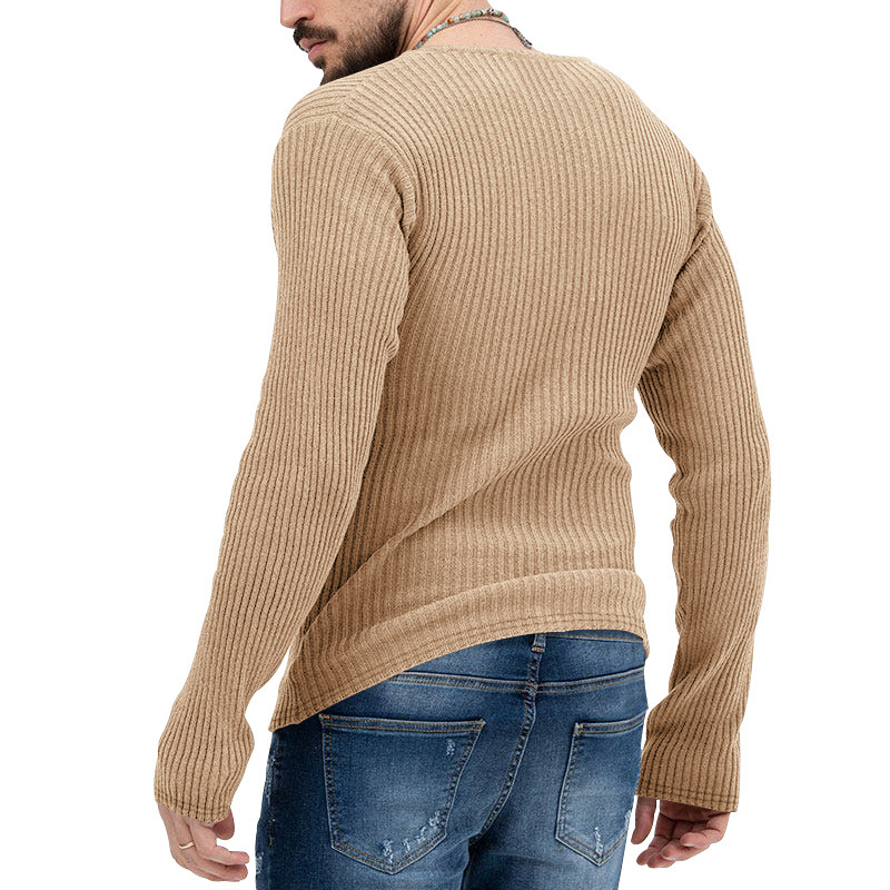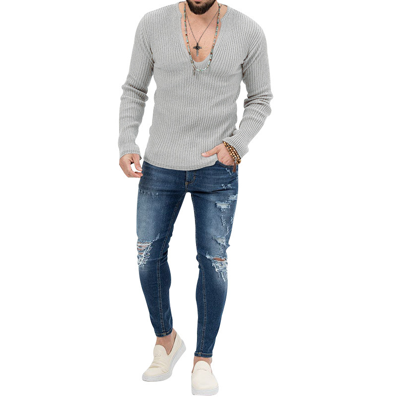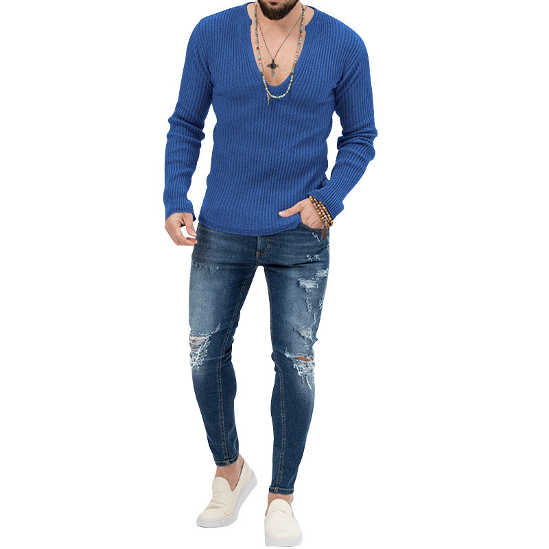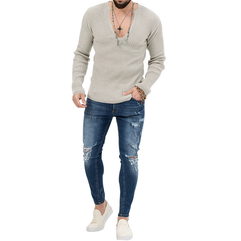 아마존 유럽과 미국의 국경 2025 유럽과 미국의 남성 트렌디 한 봄과 가을 깊은 V 넥 남자의 새로운 단색 니트 긴팔 셔츠