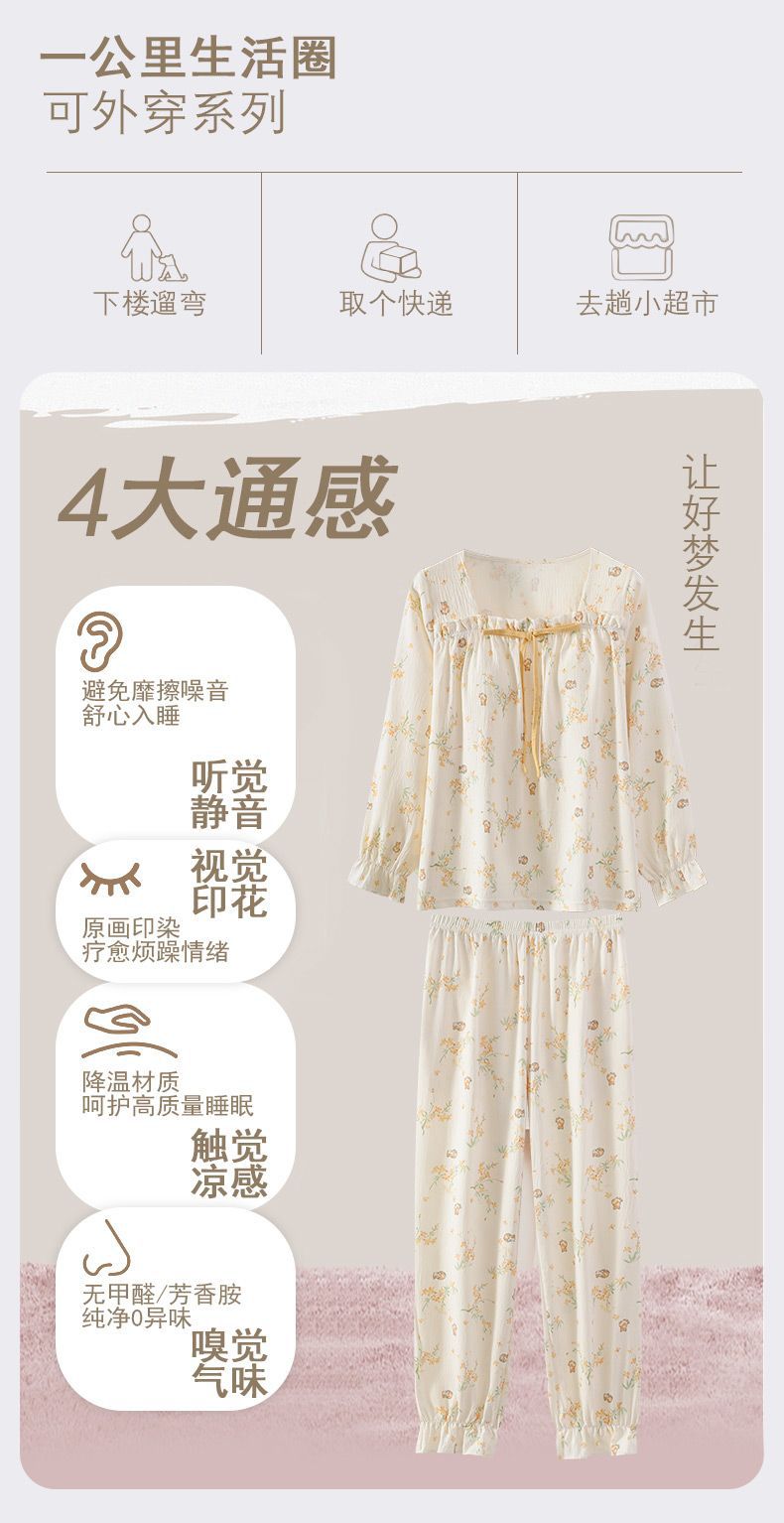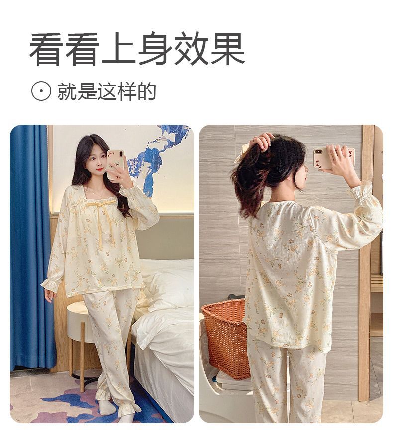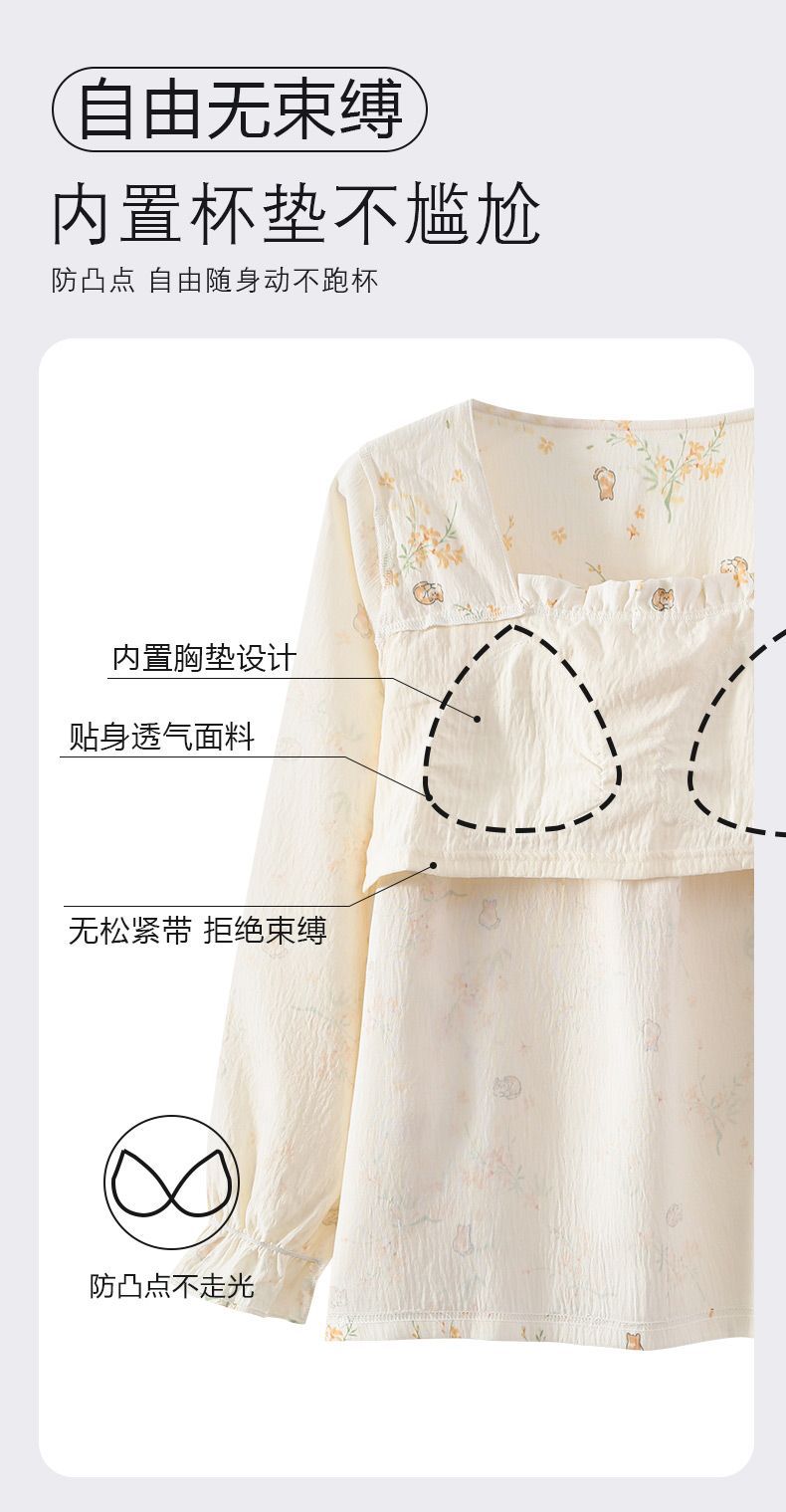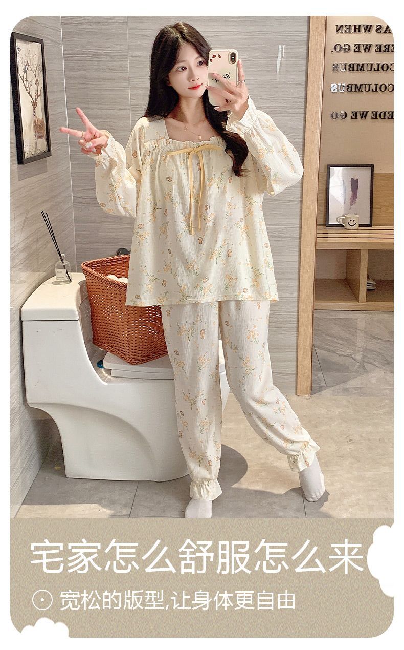가슴 패드와 여성 잠옷 봄과 가을 새로운 구름 면 달콤한 공주 스타일 홈 옷 외부 착용 긴 소매 세트 머리스토어 가기