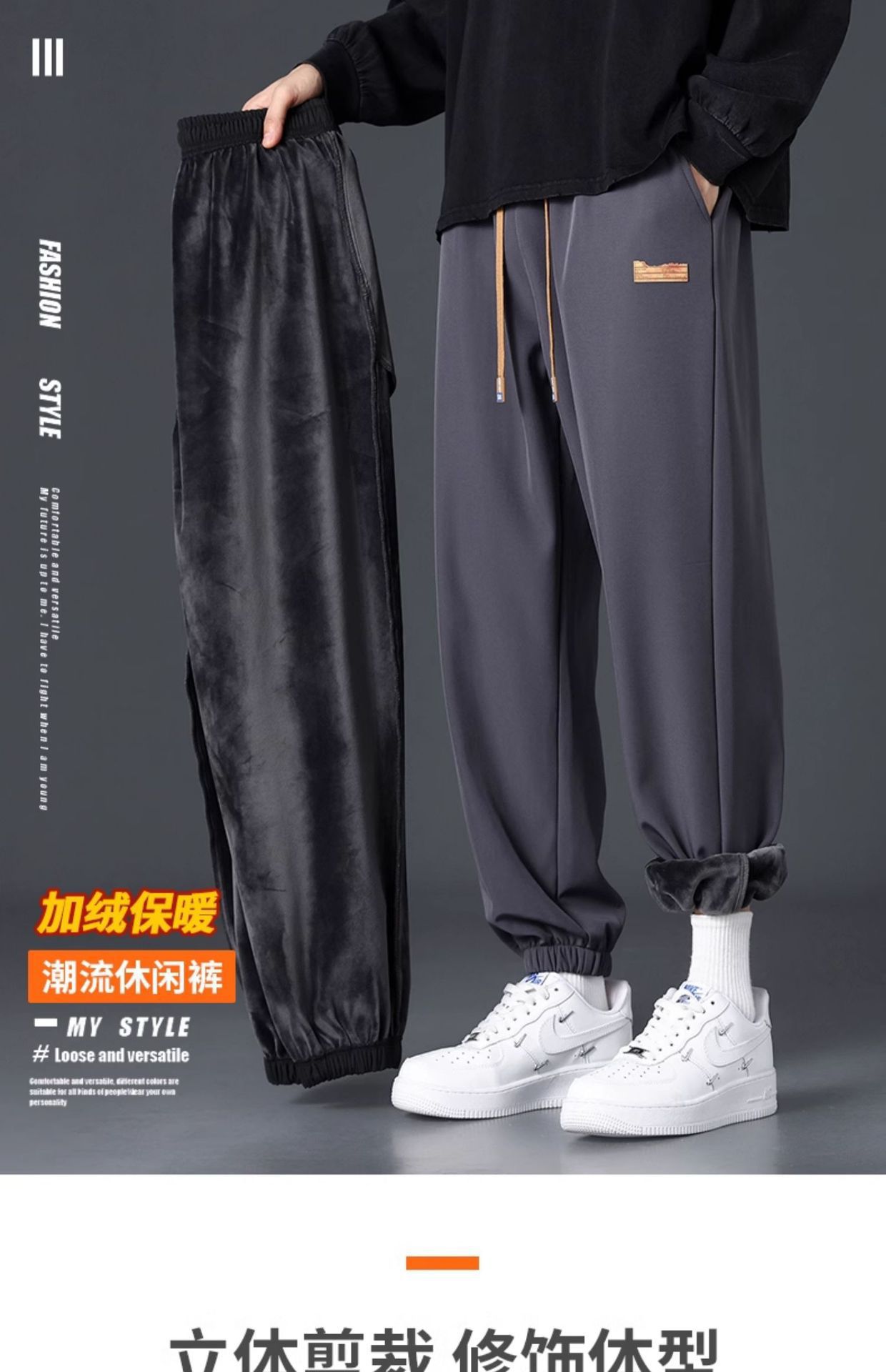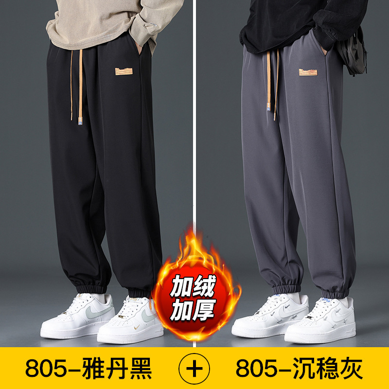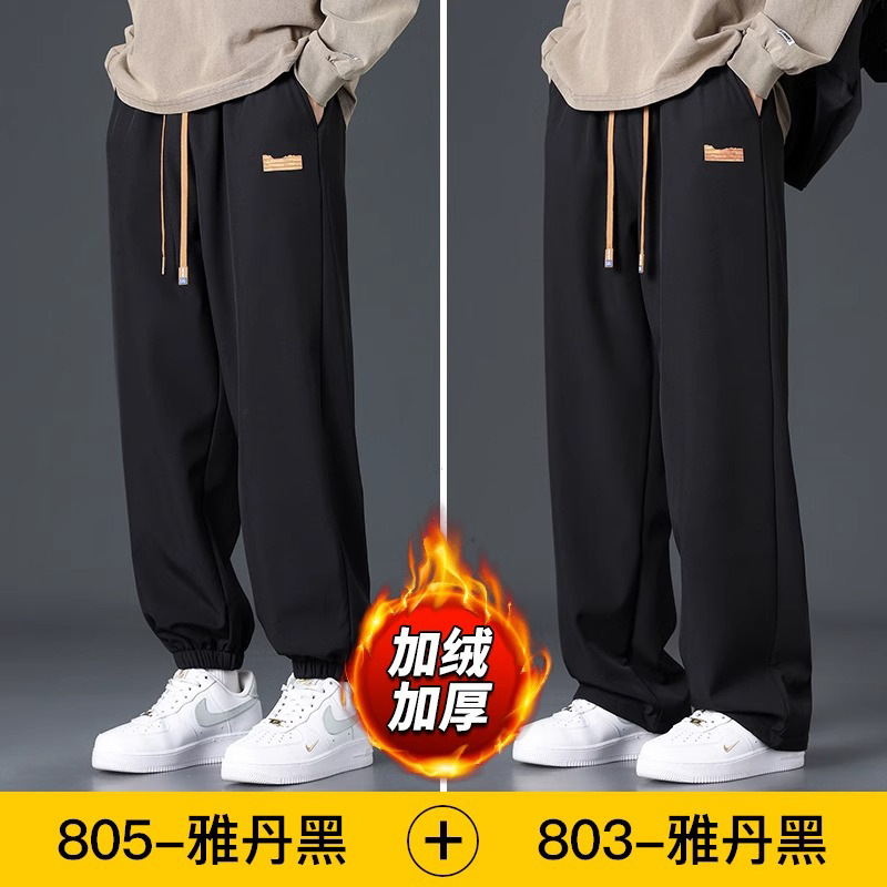 NASA 기모 바지 남자의 가을과 겨울 새로운 유행 면 바지 두꺼운 스포츠 발 번들링 바지 느슨한 스트레이트 캐주얼